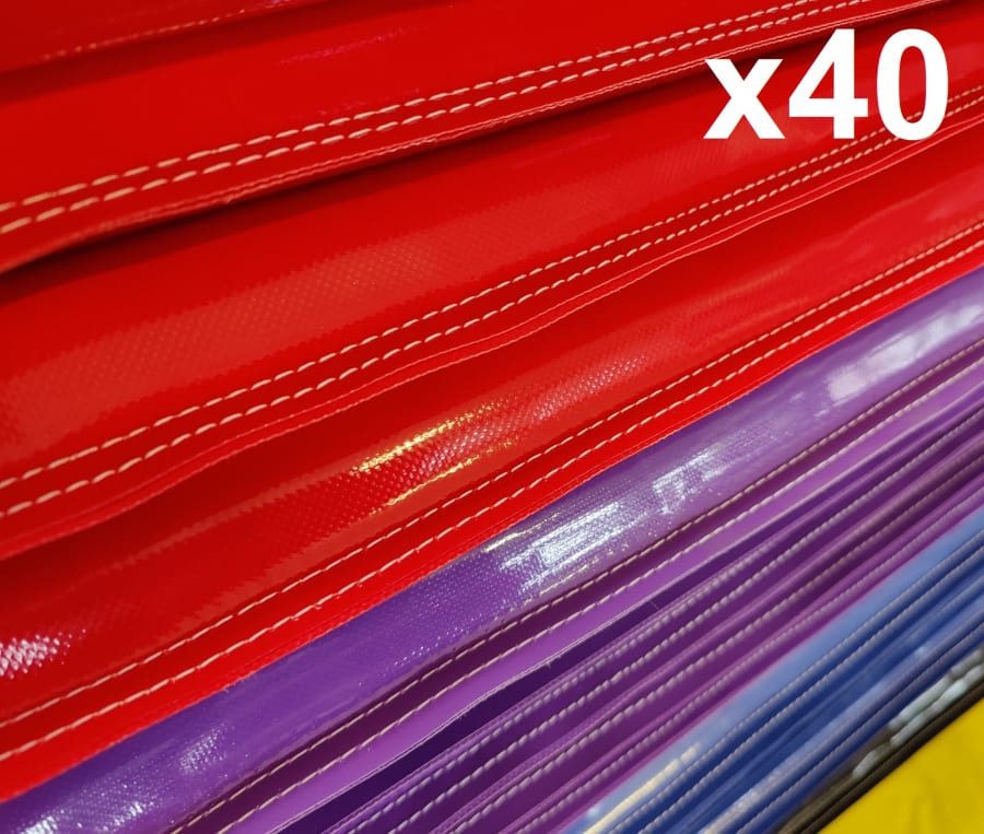 Our PVC bouncy castle mats are sandwich style mats sewn externally to give 2 flat surfaces and 4 flat external seams and no internal pressure. This method allows the mats to remain flat, firm and to stop unnecessary wear and tear or delamination from high traffic on folded PVC. PVC is not designed to be folded under load for long periods of time and why you often see internal seam mats cracking and splitting prematurely. The mats are manufactured in batches of 300 to bring the costs down through volume. We do not compromise on materials.