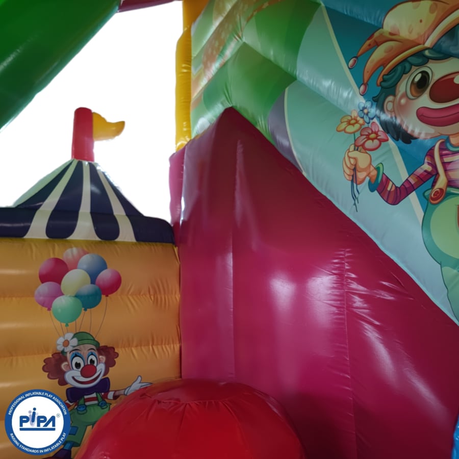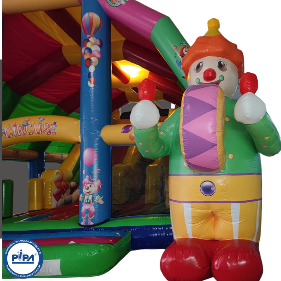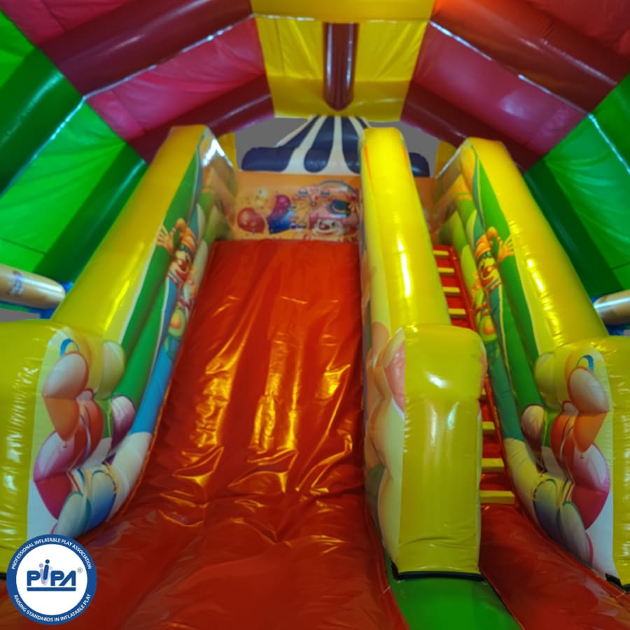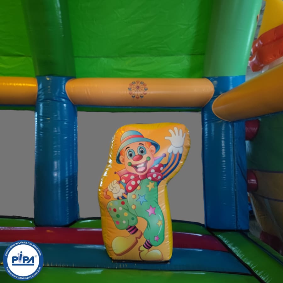 This circus-themed multiplay bouncer is perfect for entertaining a party of around 25 people (not all at once, of course), making it an ideal choice for a variety of occasions. Whether you're hosting a birthday party, a school gala, or a summer fete, this inflatable provides hours of laughter and excitement for guests of all ages.