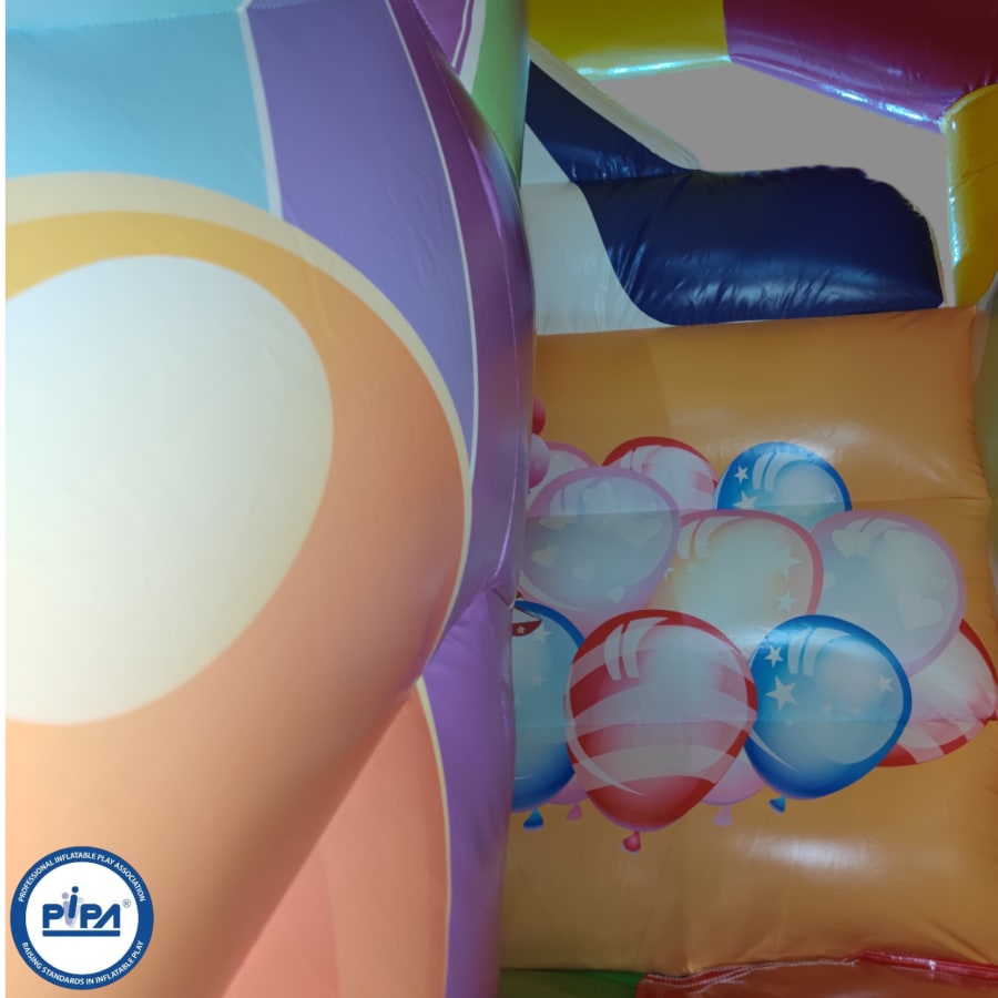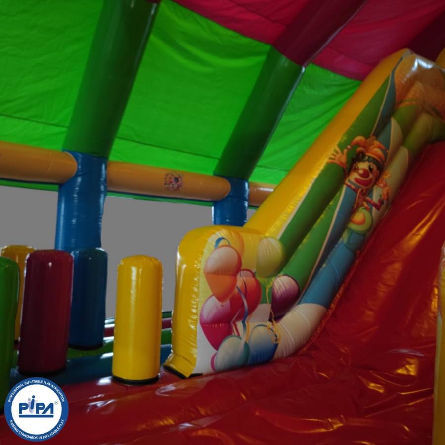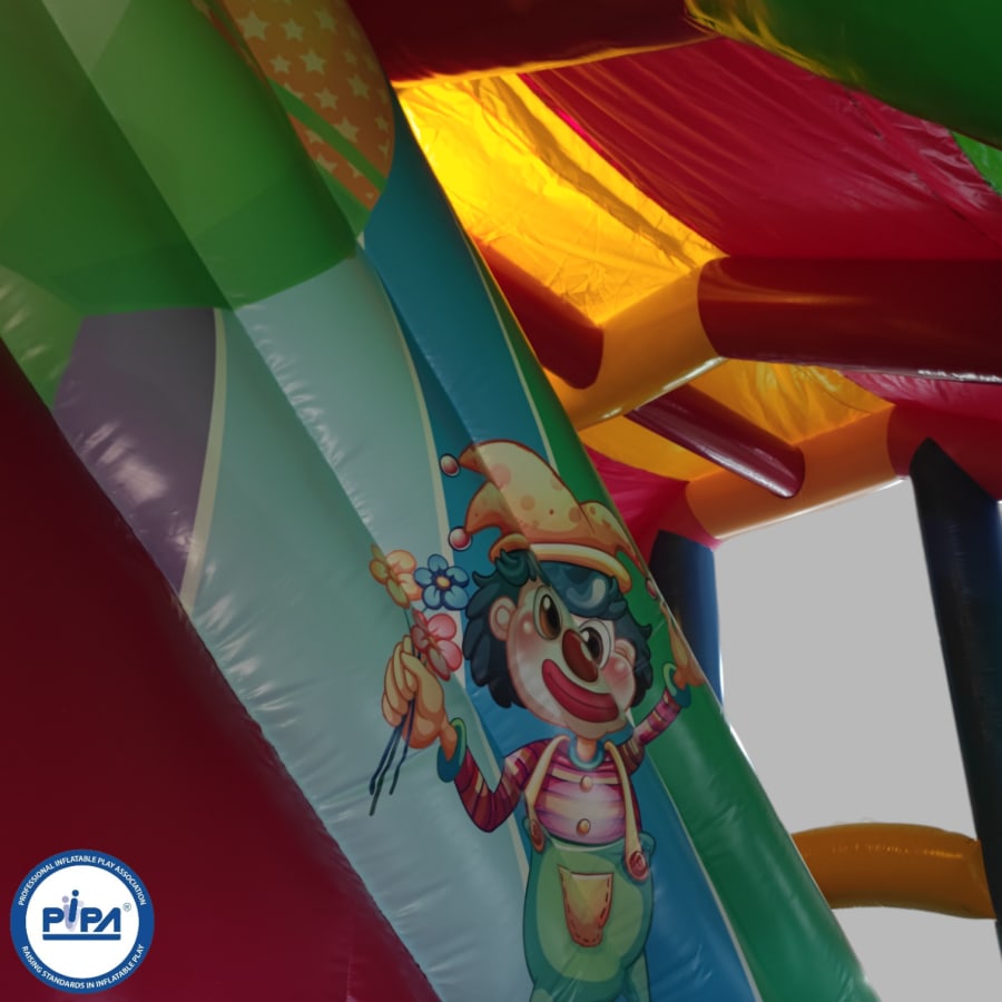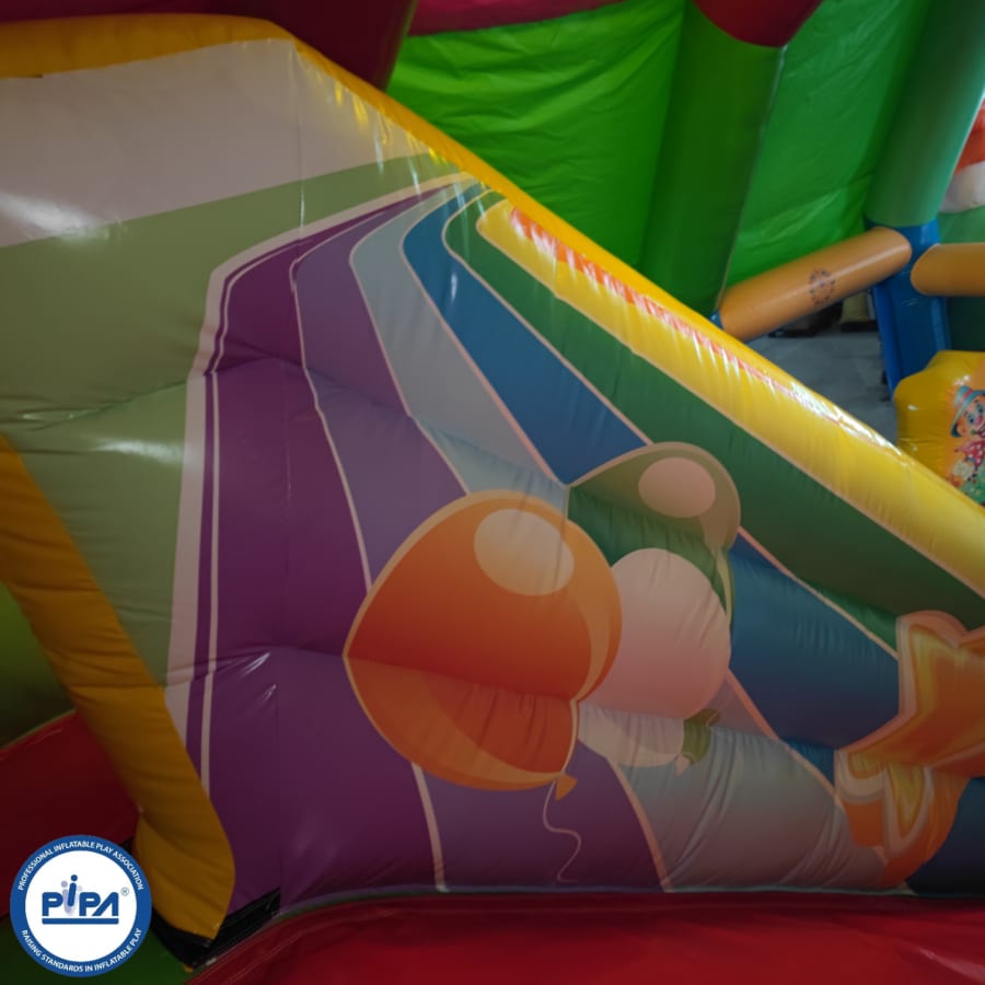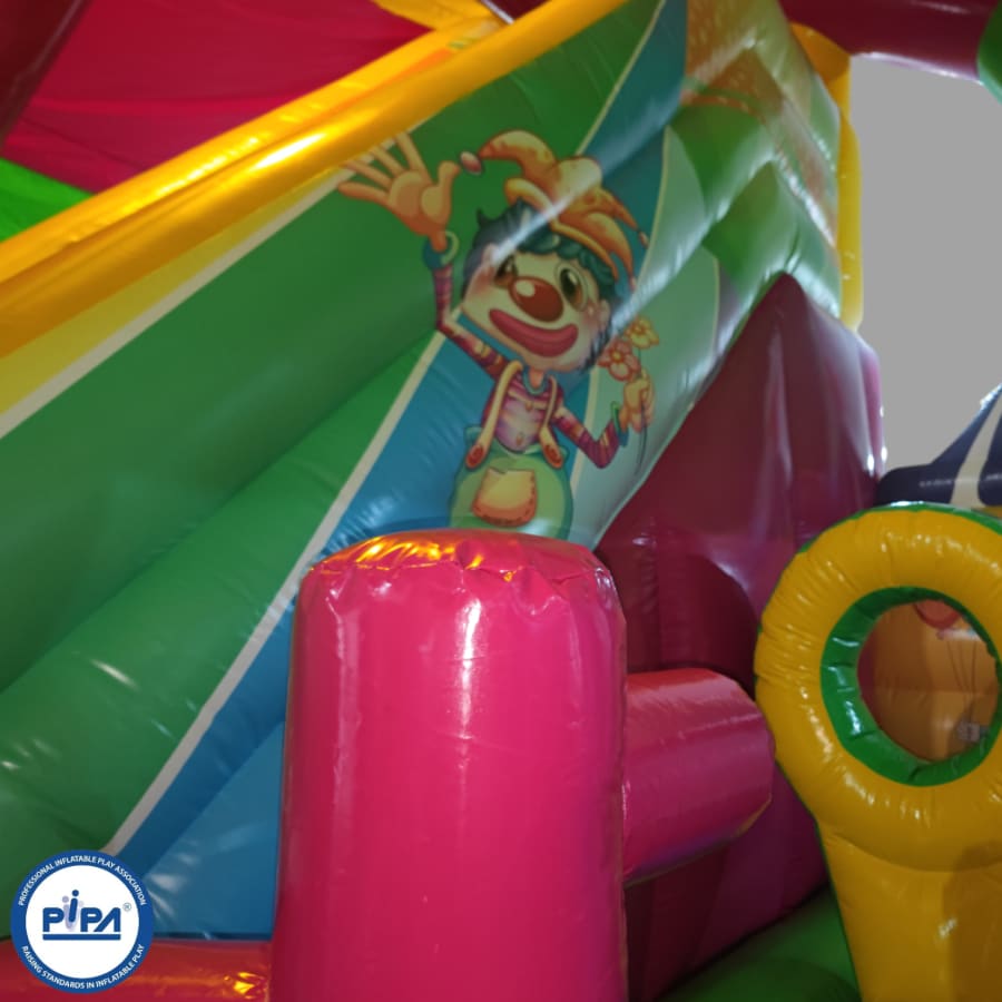 This circus-themed multiplay bouncer is perfect for entertaining a party of around 25 people (not all at once, of course), making it an ideal choice for a variety of occasions. Whether you're hosting a birthday party, a school gala, or a summer fete, this inflatable provides hours of laughter and excitement for guests of all ages.