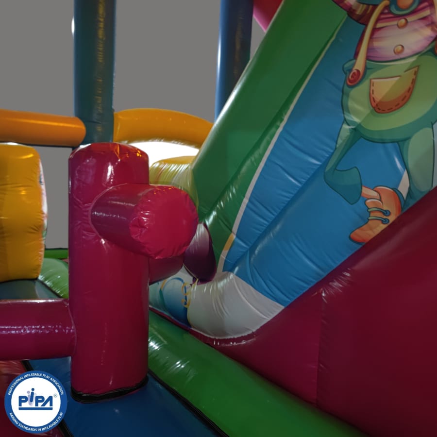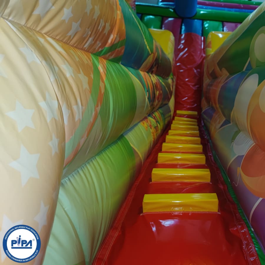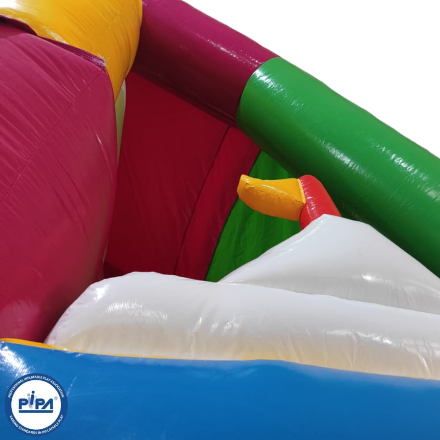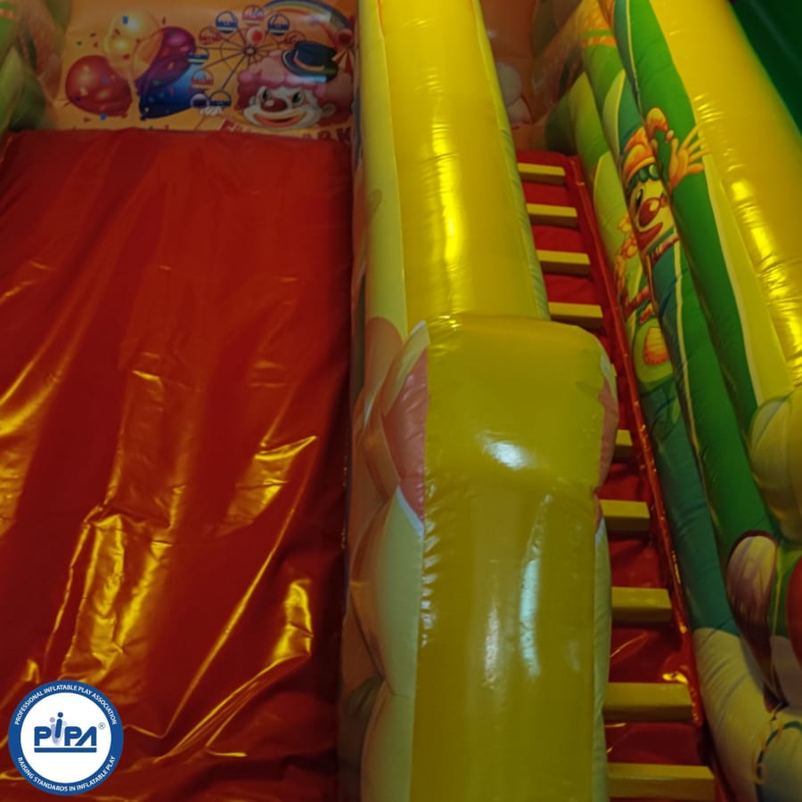 In the heart of the circus-themed wonderland, a thrilling 10ft platform slide takes center stage, offering an exhilarating ride for all who dare to climb to the top. But that's just the beginning! Our multiplay bouncer is packed with engaging activities, including inflatable biff and bash pillars, colorful obstacles to explore, and an array of fun challenges.