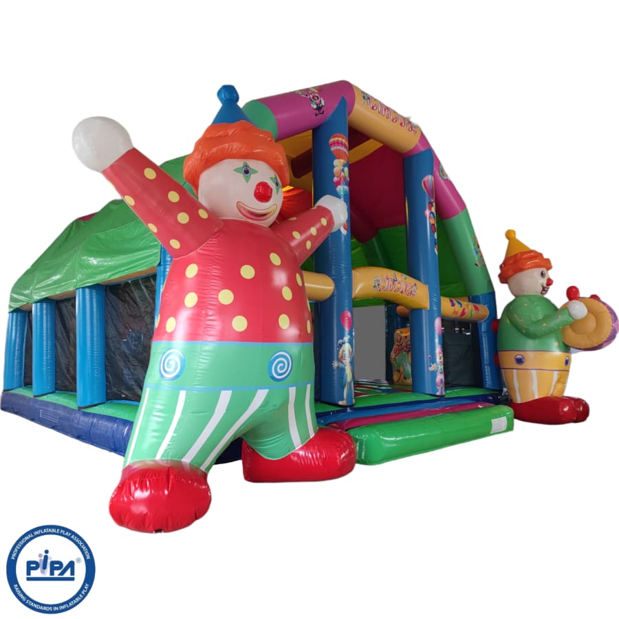 As you approach, you'll be greeted by two 8ft-tall inflatable clowns standing guard at the entrance, setting the tone for the playful adventure that awaits inside. Stepping in, you'll discover a world of excitement with a mini funfair atmosphere.