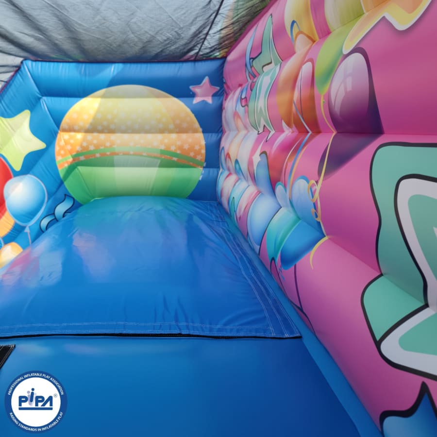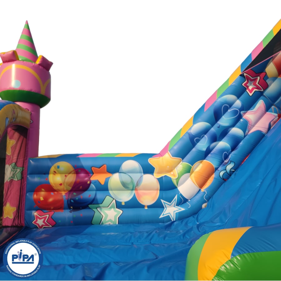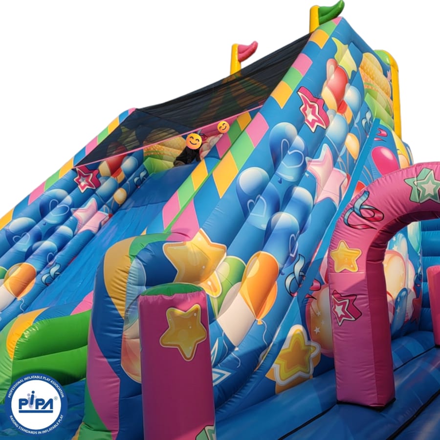 Perfect for entertaining up to 25 individuals at a time, our balloon-themed multiplay bouncer is the ultimate choice for birthdays, school events, or summer celebrations. It's guaranteed to keep the merriment alive and the smiles abundant throughout the day.