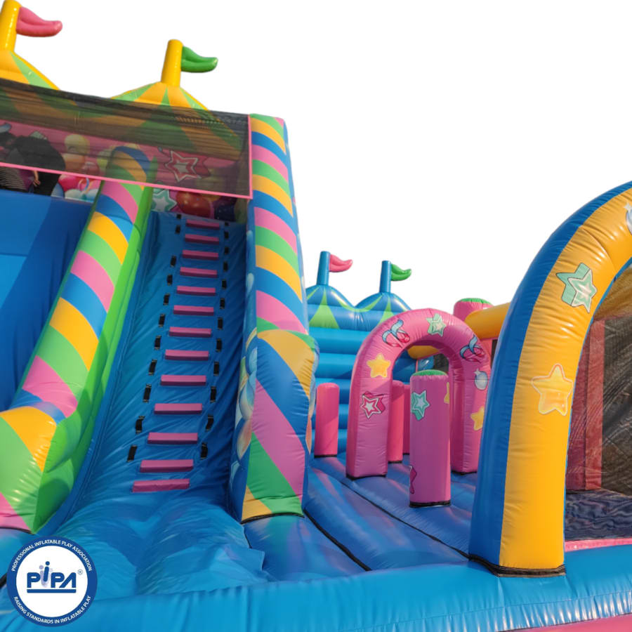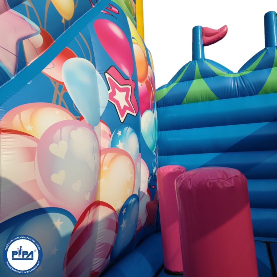 Welcome to our vibrant and captivating Balloon-themed multiplay bouncer—an enchanting spectacle that brings the charm of a fairground directly to your event! Bursting with color and excitement, this inflatable attraction ensures an unforgettable experience for all attendees.