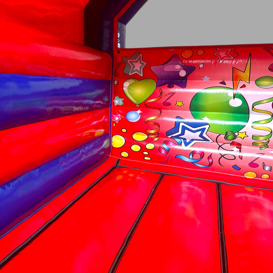 Our 15x15ft Partytime Red & Blue bouncy castle is fantastic for any party, venue or occasion. The Partytime Red & Blue castle is a great size and is a real eye catcher for a garden party or event. This Partytime Red & Blue bouncy castle will keep both adults and children entertained for hours, leaving you to be able to sit back and watch them bounce, play, laugh, have fun and enjoy their day.