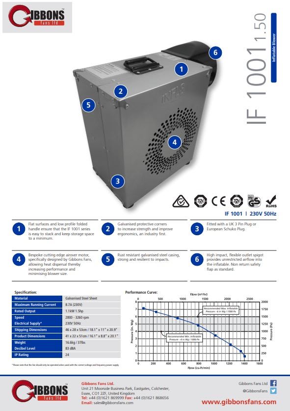 Gibbons bouncy castle blowers and inflatables fans have become Europe's largest manufacturer and supplier of fans and blowers.