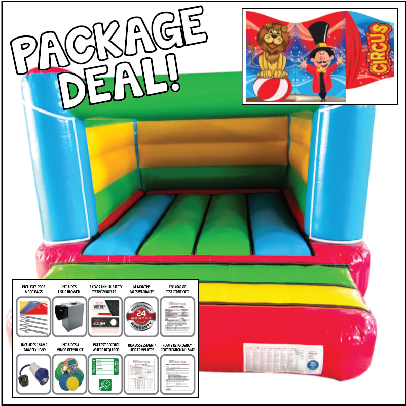 This castle can be made in a range of colours with a range of art work and we also have stock that is readily available should anybody need something urgently. This castle will last a long time if looked after and maintained correctly. This type of castle will fit in most gardens and the majority of indoor venues and due to its manageable size and weight, its can be set up and packed away by a single person without the need of any help.