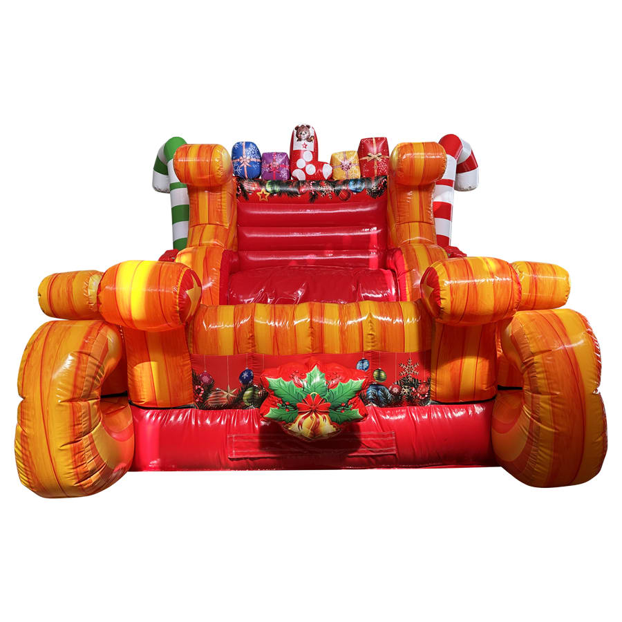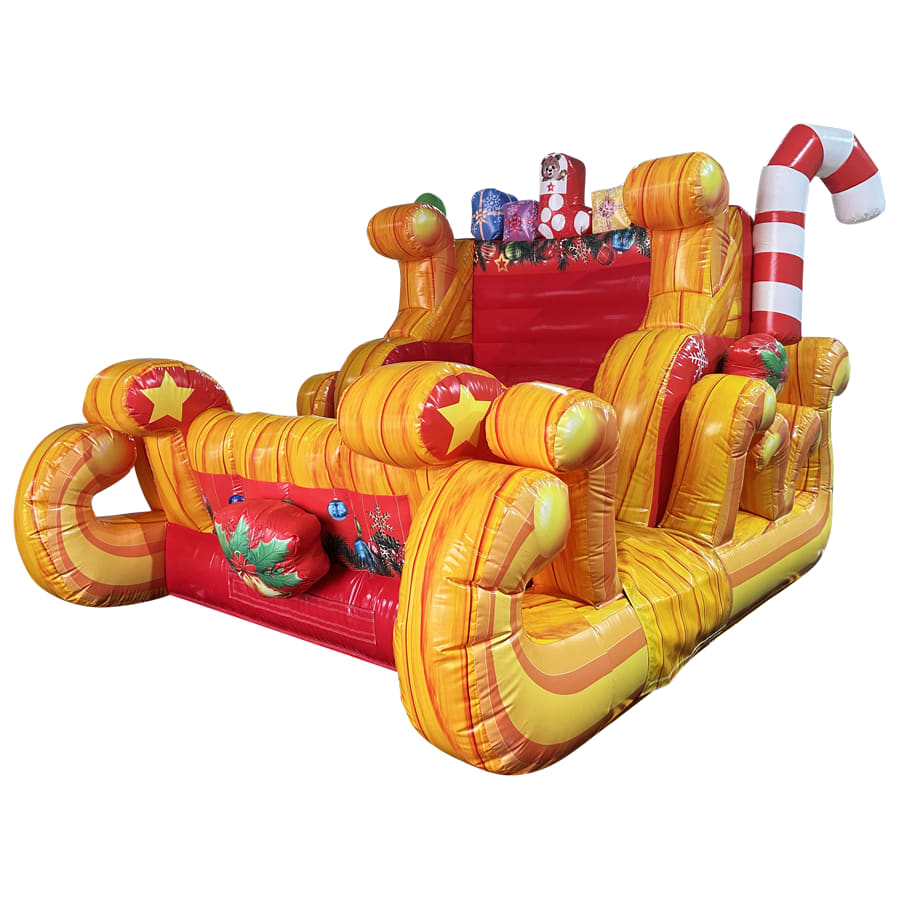The Giant inflatable Christmas Santa's sleigh prop has part of our event services for the past 10 years and is always a massive hit. Say goodbye to those hard chassis framework versions which could be cumbersome and difficult to install at a venue and say hello to this season's fully inflatable bouncy castle version of the chair. This is one of many new additions and is already popular across our range of events. This amazing attraction can be seen from afar yet still sensibly sized to fit inside most venues. Highly recommended to any company looking to expand for winter.