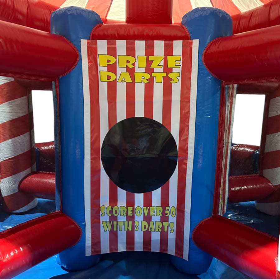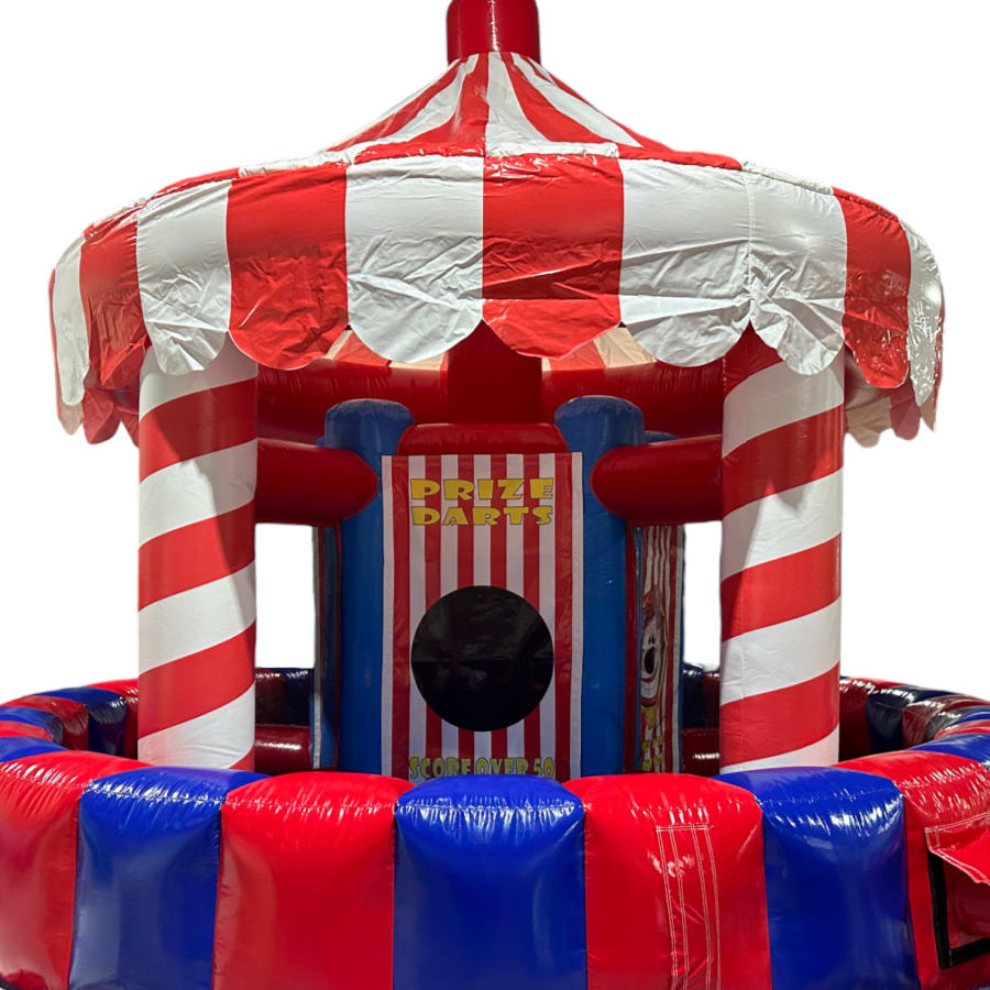 The 5 in one game offers, Hoopla, Ringtoss, Prize darts and a juggler ball game. The inflatable stall is a absolute whopper, measuring i at a huge 20ft wide making it a ideal replacement for one of the most iconic carnival games of all time and an excellent way to draw people into your event. No event is complete without all the fun of the fair. The new inflatable stall has been designed as it only takes around 20 minutes to put together. The stalls are completely mobile and relatively easy to transport ensuring set up can take place indoors, upstairs and in hard to reach areas that were previously inaccessible.