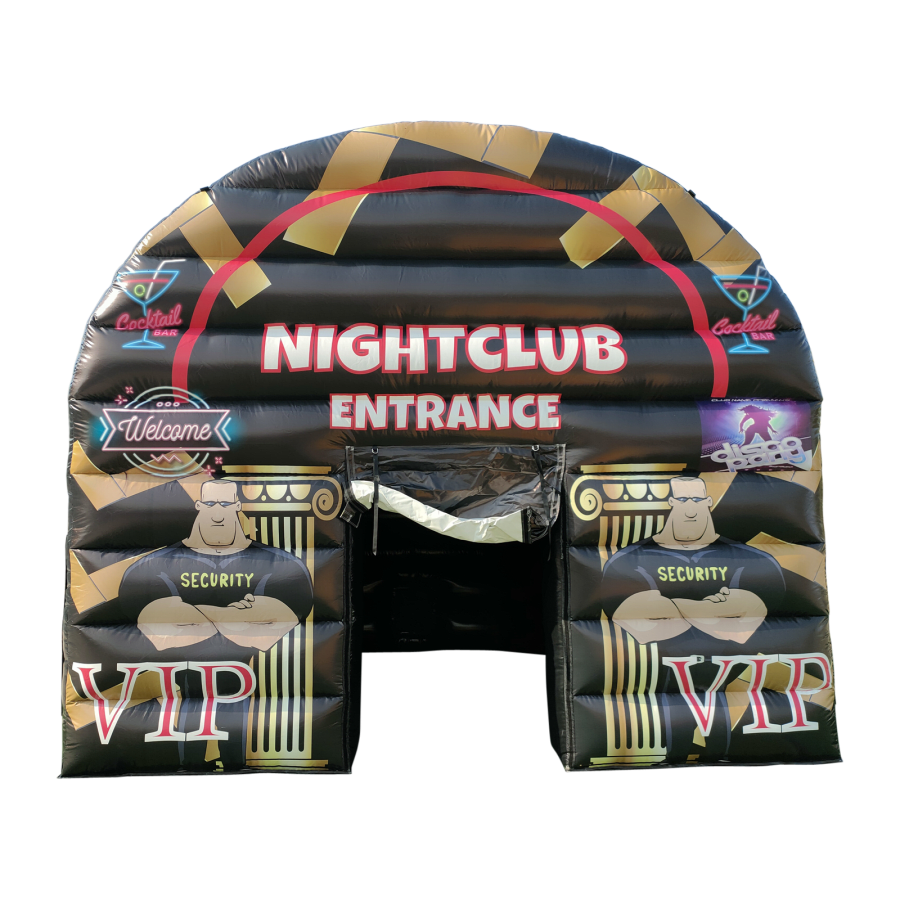 The inflatable nightclub marquee is made of high quality & durable, easy wipe PVC material, the marquee has many uses and can hold over 14 guests at any one time. The main structure has a large enough to inflate without a substructure or truss rig, although one is highly recommended for maximum reliability. The inflatable structure is rigid enough to hold lightweight cabling and lighting if required.