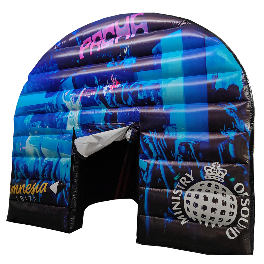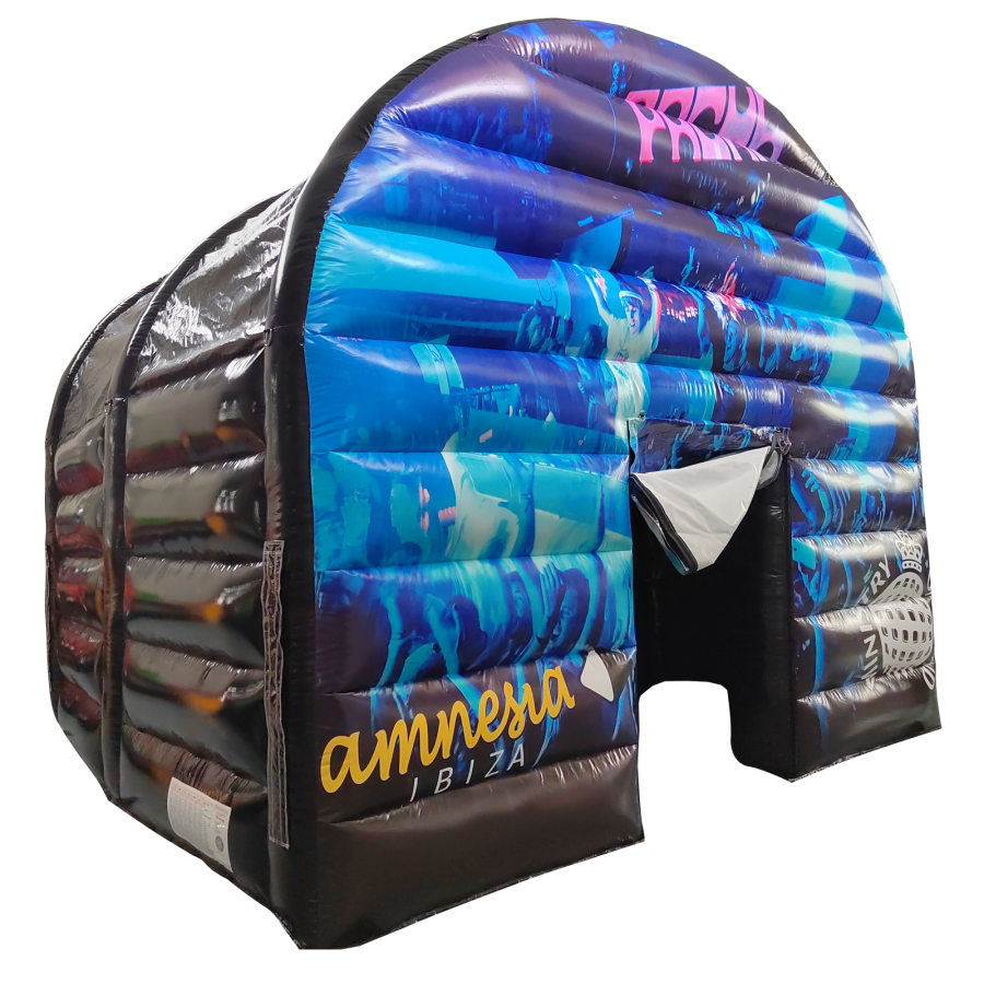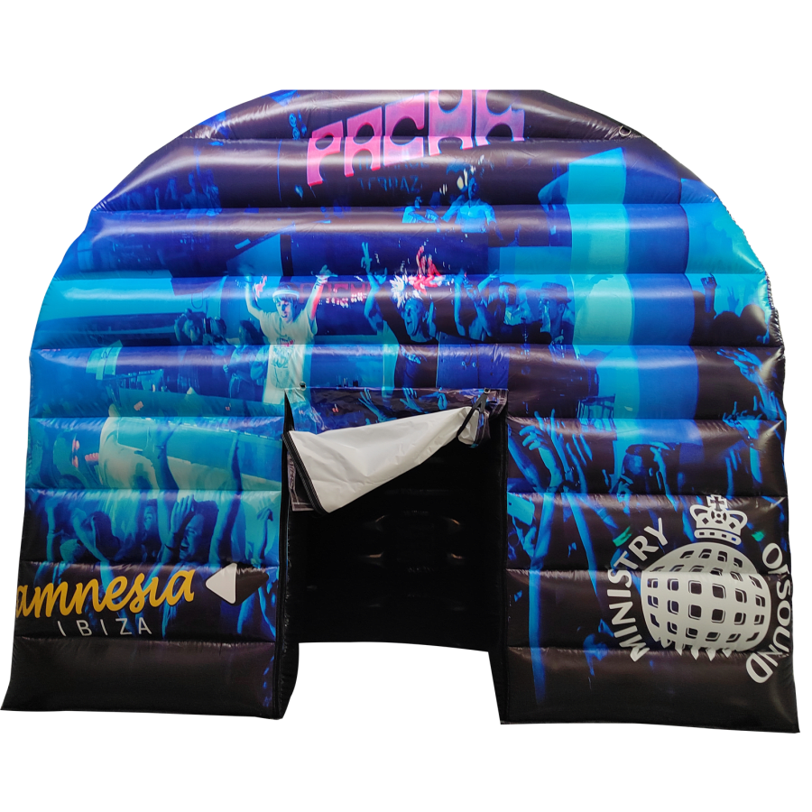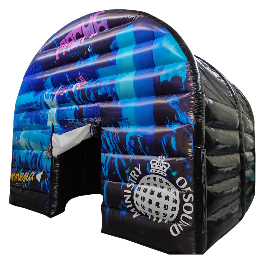 The inflatable nightclub marquee is made of high quality & durable, easy wipe PVC material, the marquee has many uses and can hold over 14 guests at any one time. The main structure has a large enough to inflate without a substructure or truss rig, although one is highly recommended for maximum reliability. The inflatable structure is rigid enough to hold lightweight cabling and lighting if required.