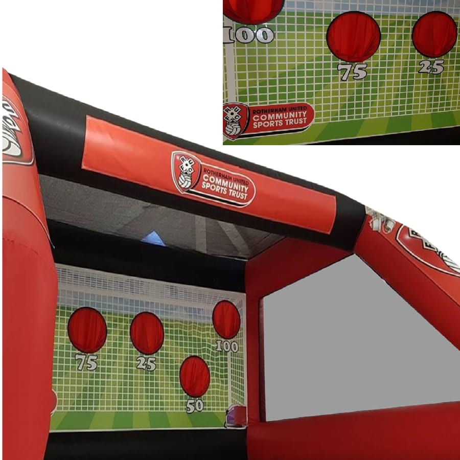 The inflatable penalty shootout is an Ideal carnival game, team building game, fundraiser and event showstopper and works really well when played as part of a time challenge with potential prizes for those able to score the most points.