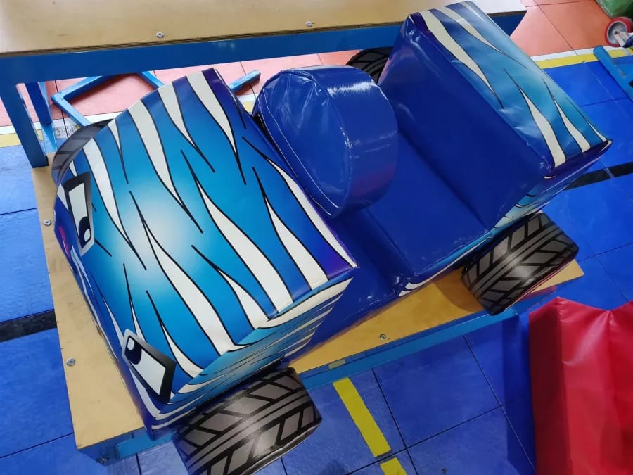 This is a brilliant piece of soft play, this is a challenge for all children , they get to build up piece by piece their own racing car and then sit inside it and pretend to be a racing driver, enjoyed by all children that get to play with it. This is an amazing piece of kit that is really easy to transport from venue to venue.