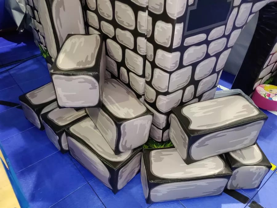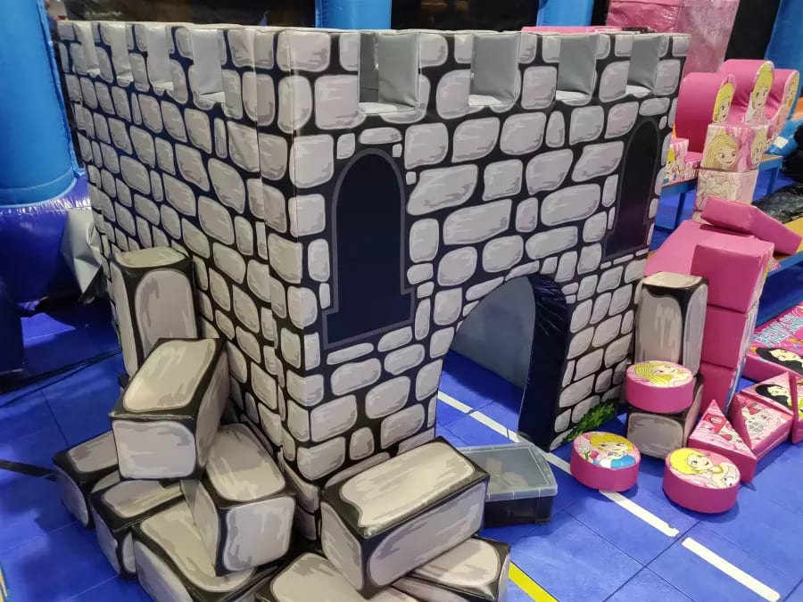 The building blocks match up perfectly with the fortress, they can be played with along with the fortress or separate. Enjoyed by all children that get to play with it. This is an amazing piece of kit that is really easy to transport from venue to venue.