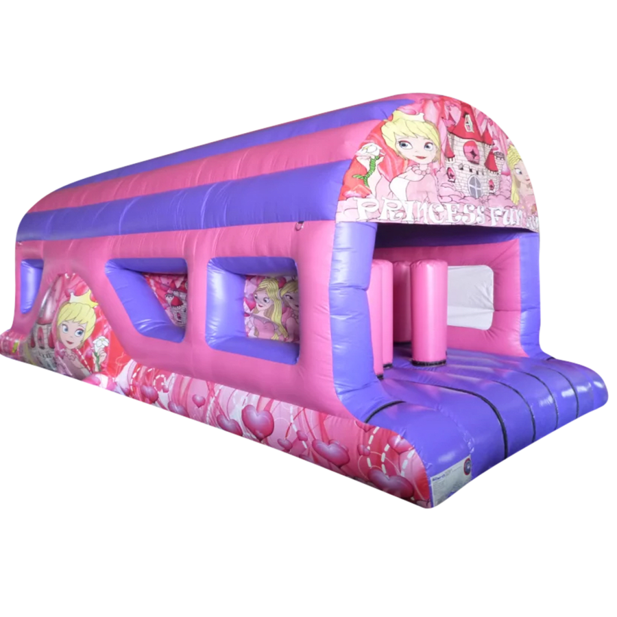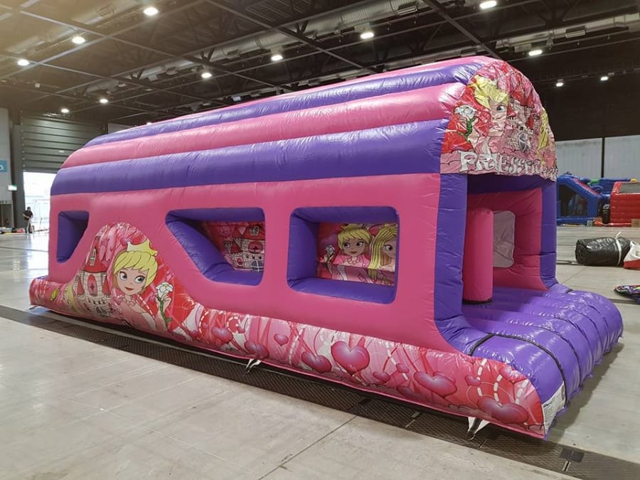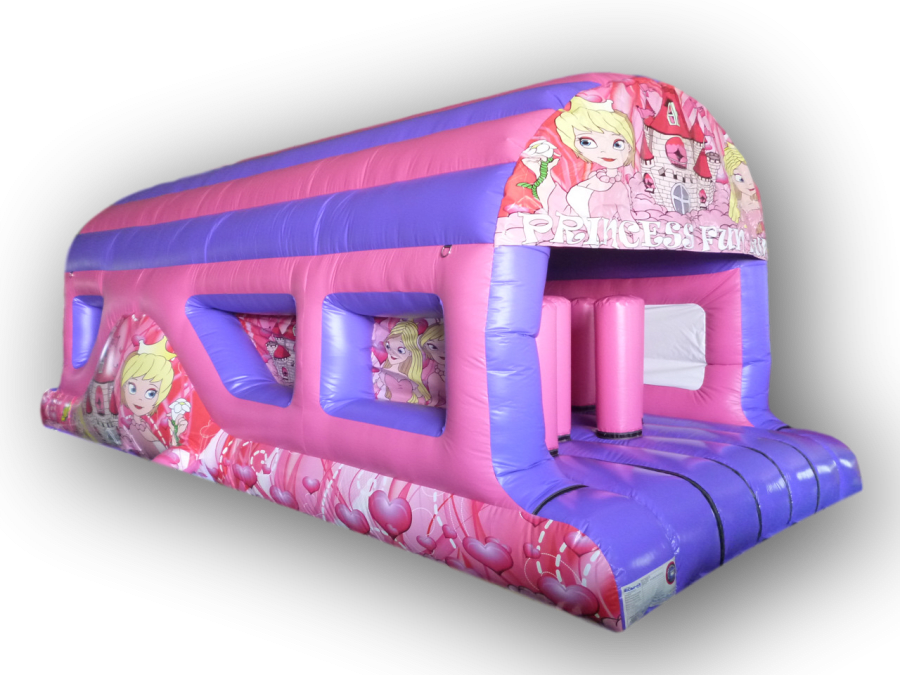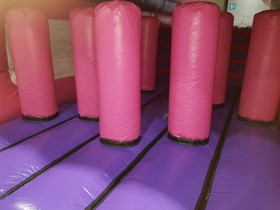 Launched at the INPAS Show, The 25ft Mini Funrun has been a massive success with hirers from all over the country. We sold a whopping 14 units within 24hrs of the show in a whole range of colours and themes. The mini fun-run is a small self-contained unit compromising of a bouncing area, multiple biff and bash posts and solid foam block steps enabling it to be used by all ages. Available in any 2 colours and in any of our themes on request.