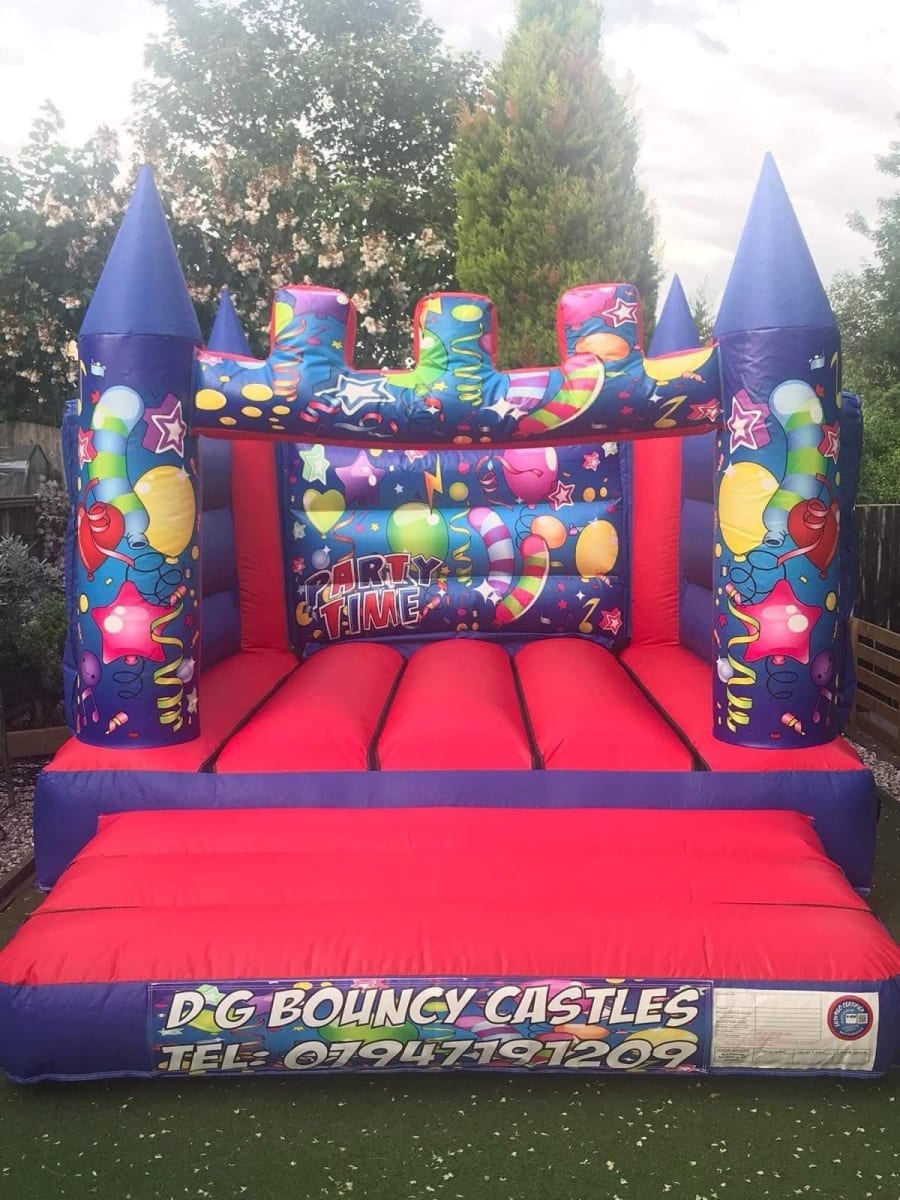 This castle can be made in a range of colours with a range of art work and we also have stock that is readily available should anybody need something urgently. This castle will last a long time if looked after and maintained correctly. This type of castle will fit in most gardens and the majority of indoor venues and due to its manageable size and weight, its can be set up and packed away by a single person without the need of any help.