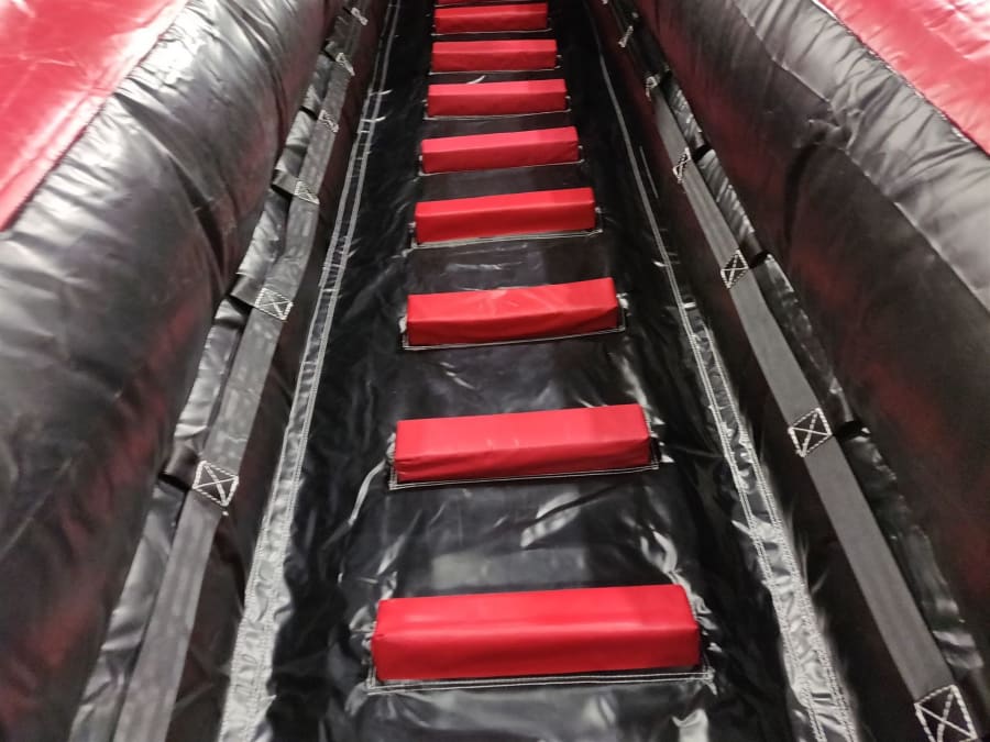 - The platform on this inflatable slide has been reduced in width by 60% to accommodate single-file use by children, reducing weight by approximately 45kg.