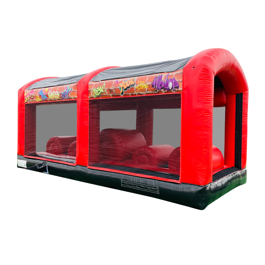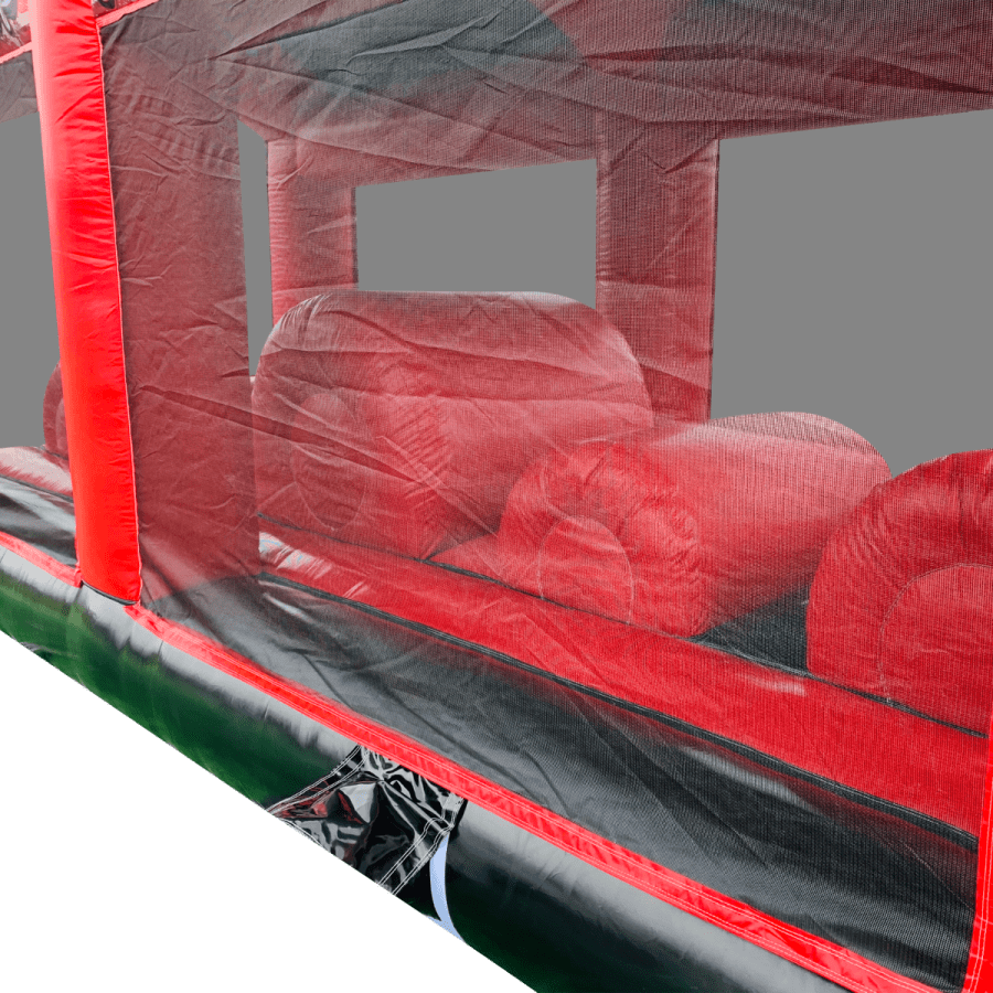 The artwork theme is absolutely fantastic and is the latest theme from our high adrenaline games range making it the perfect choice for your event. The overall height is only 11ft so its still suitable for large school sports halls, gymnasiums and large venues. The netted windows on the sides make parent or guardian supervision easy and ensure the users can be seen from all angled of the party or event for maximum safety.