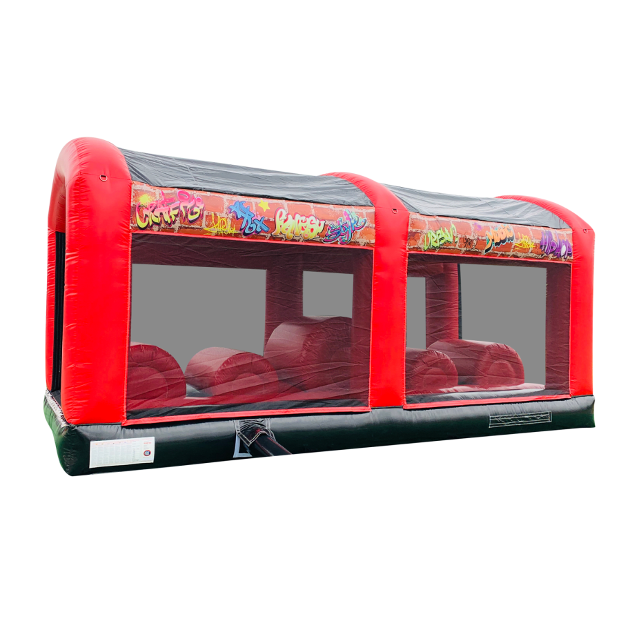 All extension pieces are designed to be located in the middle of the obstacle course and this exact listing is for 1x inflatable extension compromising of a series of climbing barrels that really aren't as easy as they first look! Absolute laugh a minute for both participants and spectators alike. The piece is universal so can be rotated to aid with a quick and easy set up. The blower tubes are located next to one another to give a better set up on site in terms of blower and cable management.