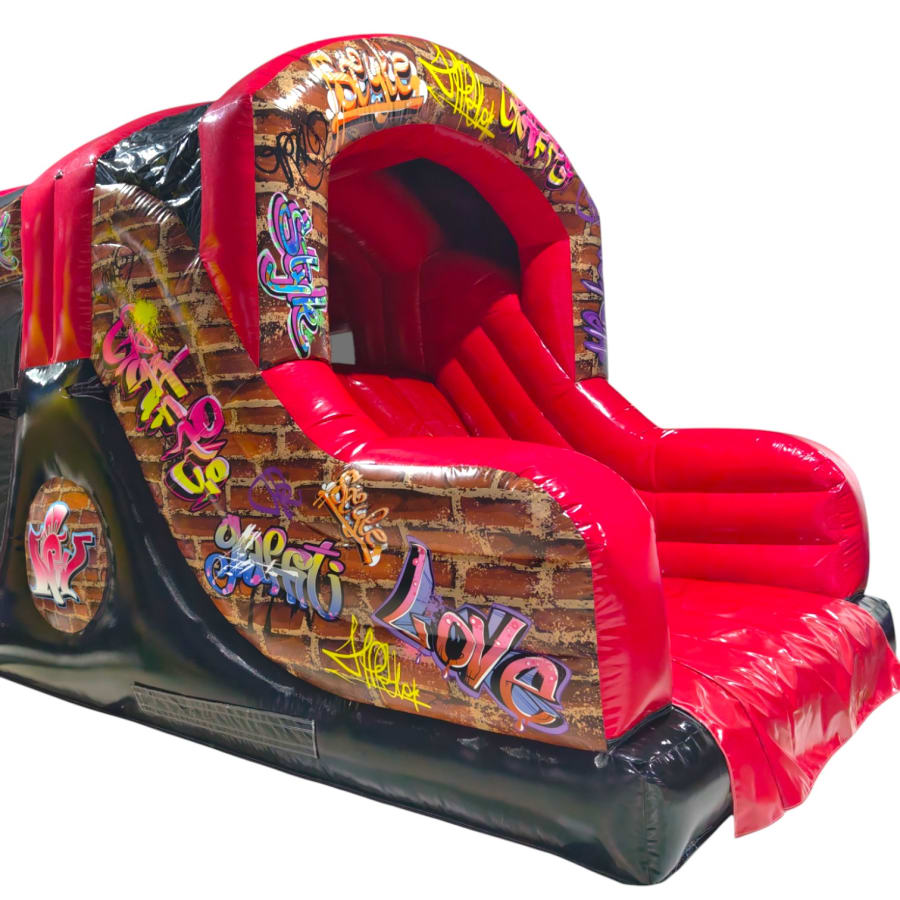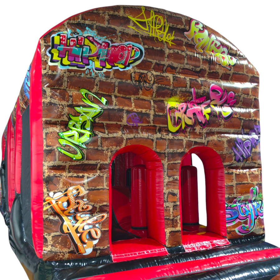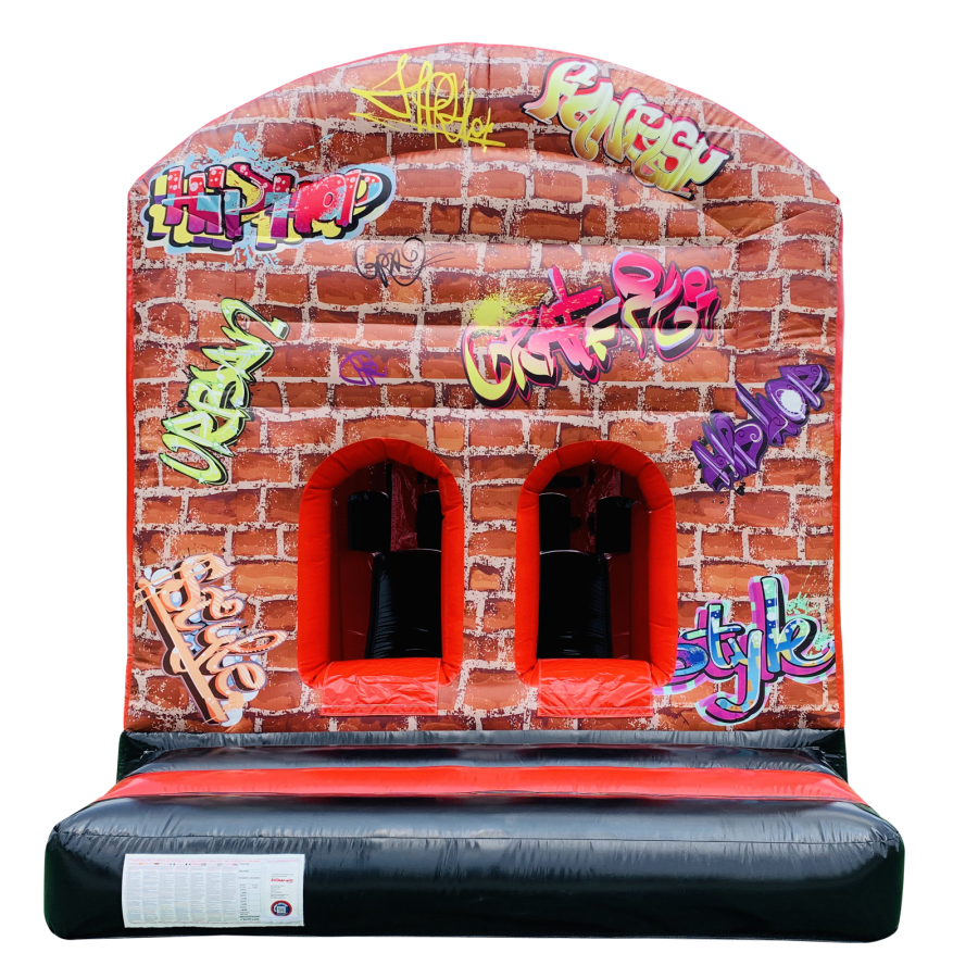 The artwork theme is absolutely fantastic and is the latest theme from our high adrenaline games range making it the perfect choice for your event. The overall height is only 11ft so its still suitable for large school sports halls, gymnasiums and large venues. The netted windows on the sides make parent or guardian supervision easy and ensure the users can be seen from all angled of the party or event for maximum safety.