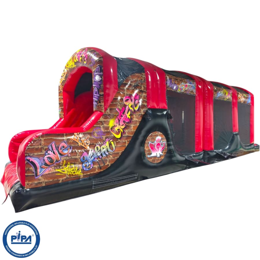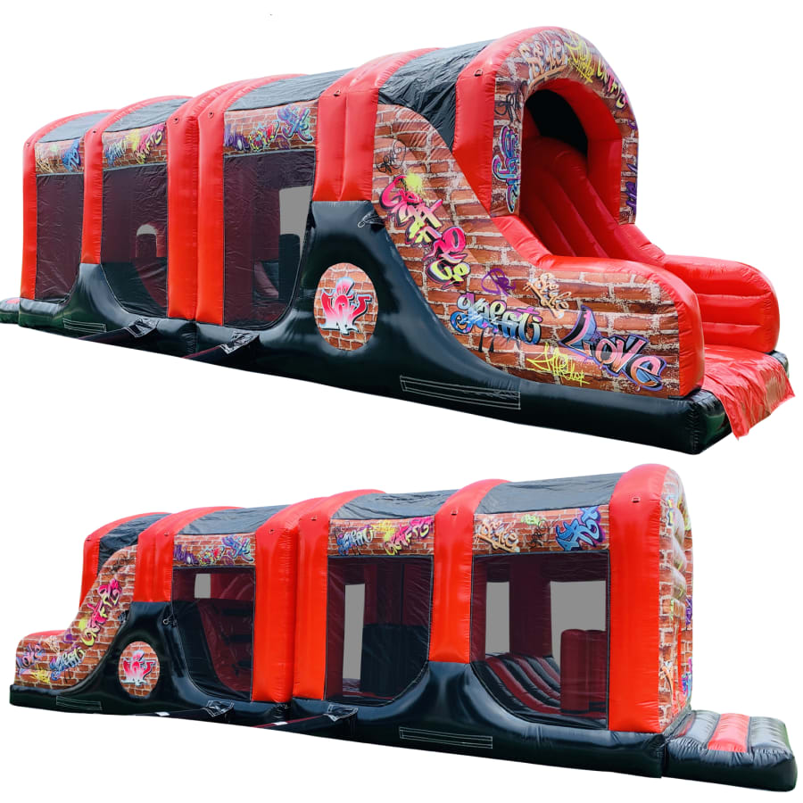 Make your day with this modern obstacle section. The inflatable obstacle course offers a safe entrance way with full theming, followed by a random series of obstacles including a series of biff and bash pillars, cool chill out area in the middle, Hurdles and finished with an adrenaline fuelled slide at the end. The obstacle course is the perfect choice for any children or adults event.