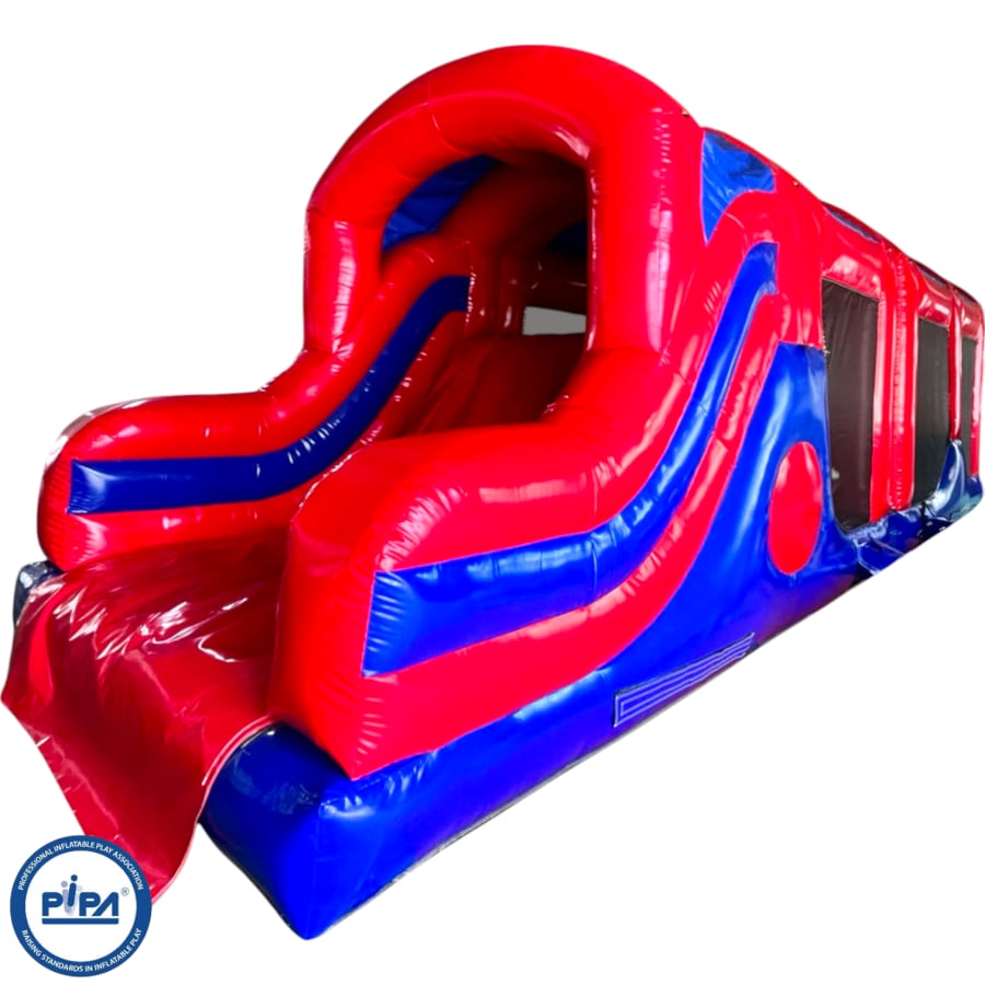 These pieces fully comply with EN14960 but only if used as a dedicated main start and finish piece. All extension pieces are designed to be located in the middle of the obstacle course and can literally be designed in any shape and style you require in the future. We have everything from Balance beams, Climbing walls, Cliff jumps, Wrecking balls, Tunnels, Bashers, Crawl Tubes, Foam pits and much much more. This section incorporates an up and over slide, biff and bash, and bouncing area, hurdles, whackers, biff and bash posts, mini humps, obstacle humps, crawl through tunnels and much much more!