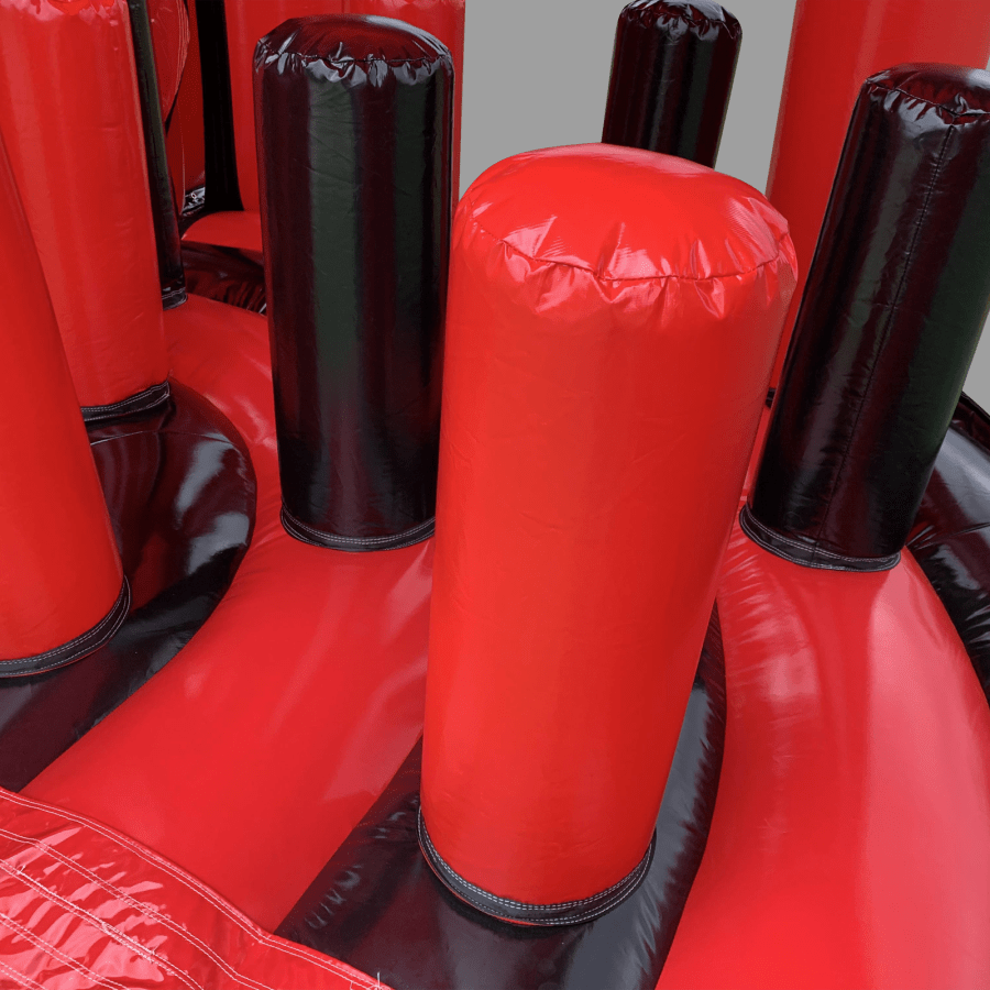 All extension pieces are designed to be located in the middle of the obstacle course and this exact listing is for 1x inflatable extension compromising of a 2x 90 Degree curves that make either a 180 degree curved section or a wiggly S shaped piece to add a real unique dimension to your obstacle course. The curved sections are packed with vertical biff and bash pillars and ensures that your clients can maximise the use of areas currently not suitable for a lengthy obstacle course and is a brilliant fete of inflatable engineering.