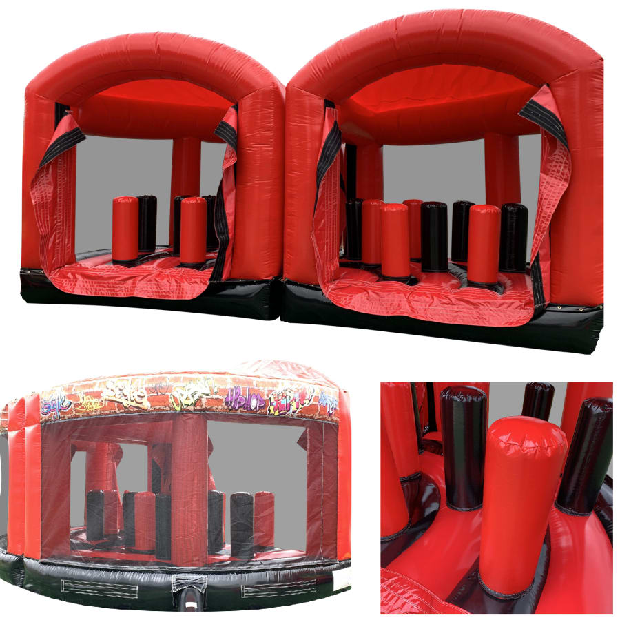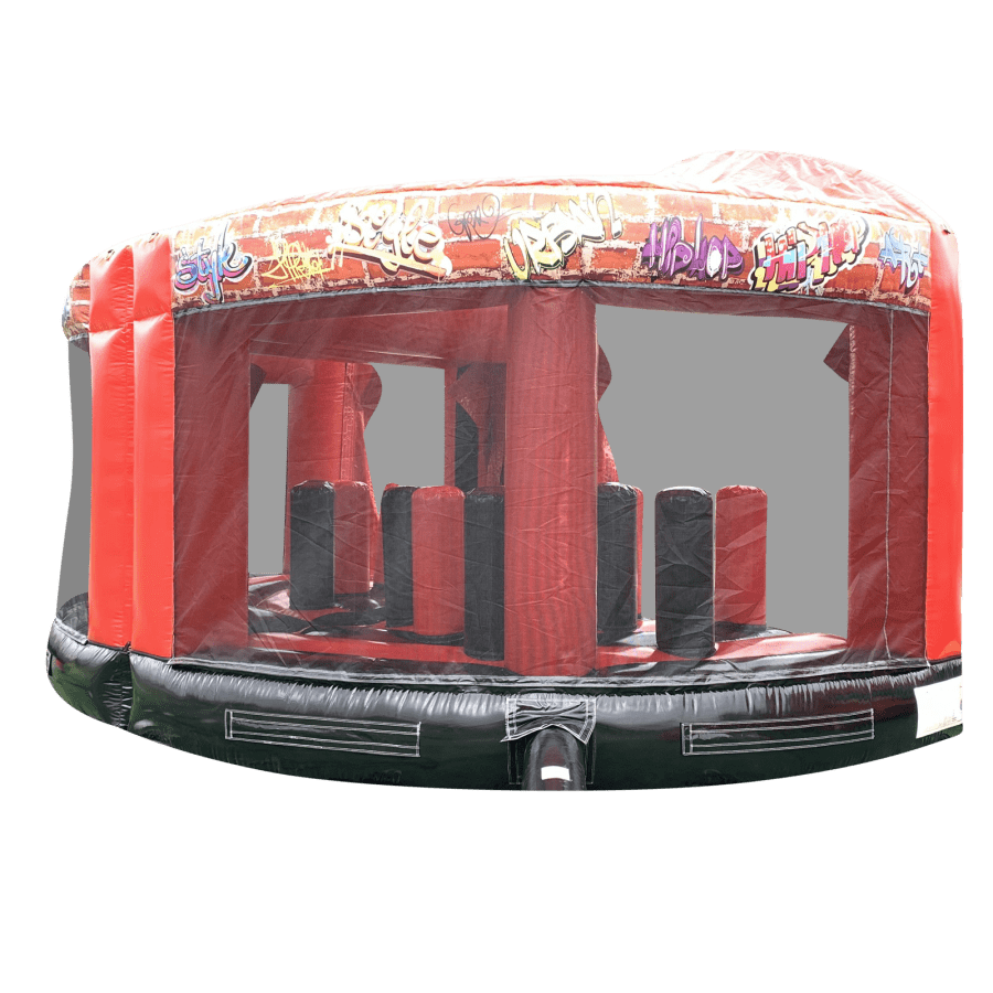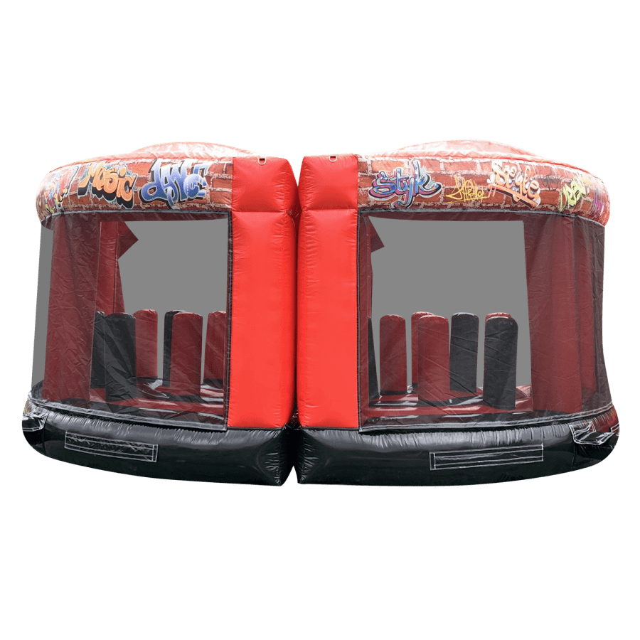 The artwork theme is absolutely fantastic and is the latest theme from our high adrenaline games range making it the perfect choice for your event. The overall height is only 11ft so its still suitable for large school sports halls, gymnasiums and large venues. The netted windows on the sides make parent or guardian supervision easy and ensure the users can be seen from all angled of the party or event for maximum safety.
