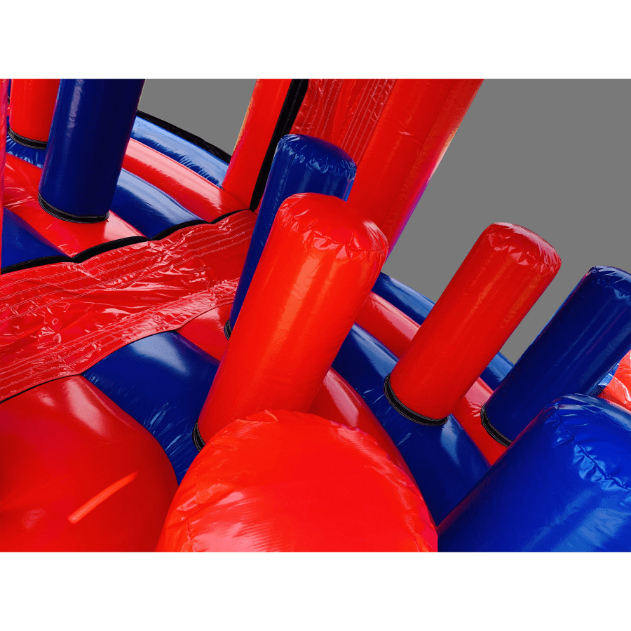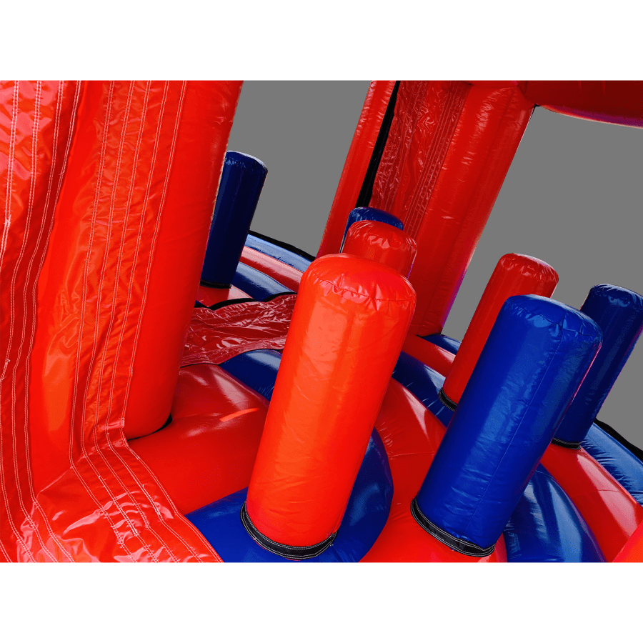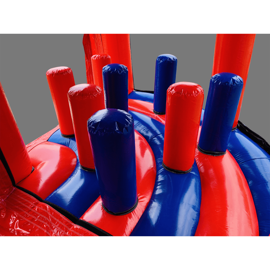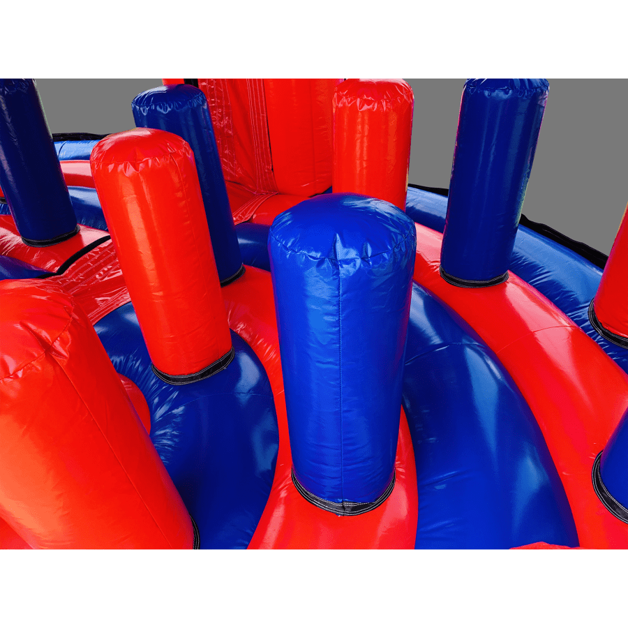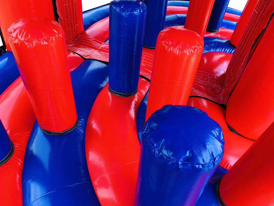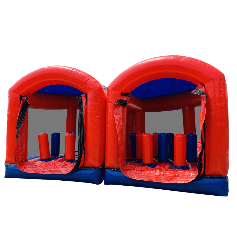 All extension pieces are designed to be located in the middle of the obstacle course and this exact listing is for 1x inflatable extension compromising of a 2x 90 Degree curves that make either a 180 degree curved section or a wiggly S shaped piece to add a real unique dimension to your obstacle course. The curved sections are packed with vertical biff and bash pillars and ensures that your clients can maximise the use of areas currently not suitable for a lengthy obstacle course and is a brilliant fete of inflatable engineering.