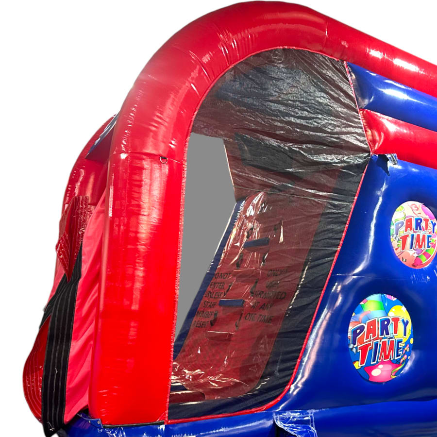 The artwork theme is absolutely fantastic and is the latest theme from our high adrenaline games range making it the perfect choice for your event. The overall height is only 11ft so its still suitable for large school sports halls, gymnasiums and large venues. The netted windows on the sides make parent or guardian supervision easy and ensure the users can be seen from all angled of the party or event for maximum safety.