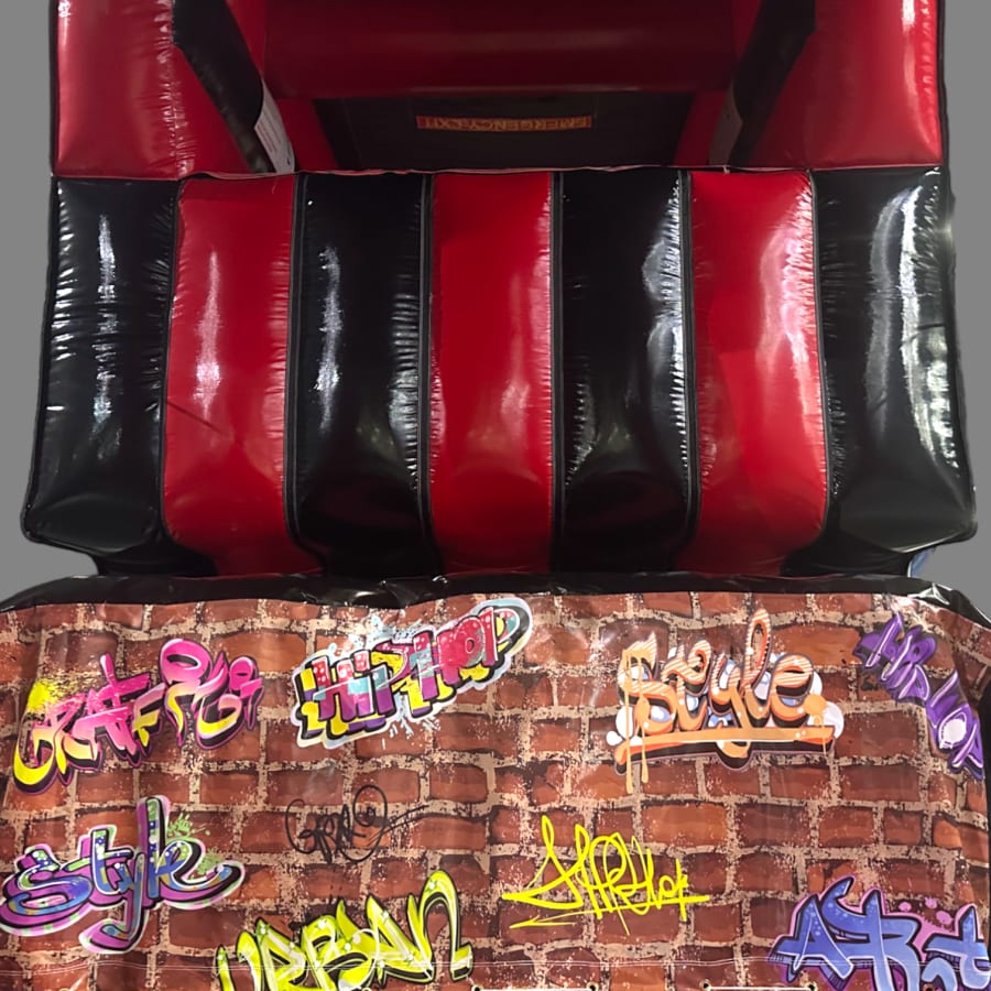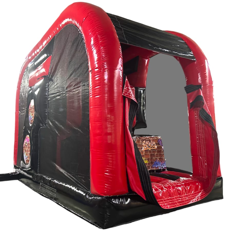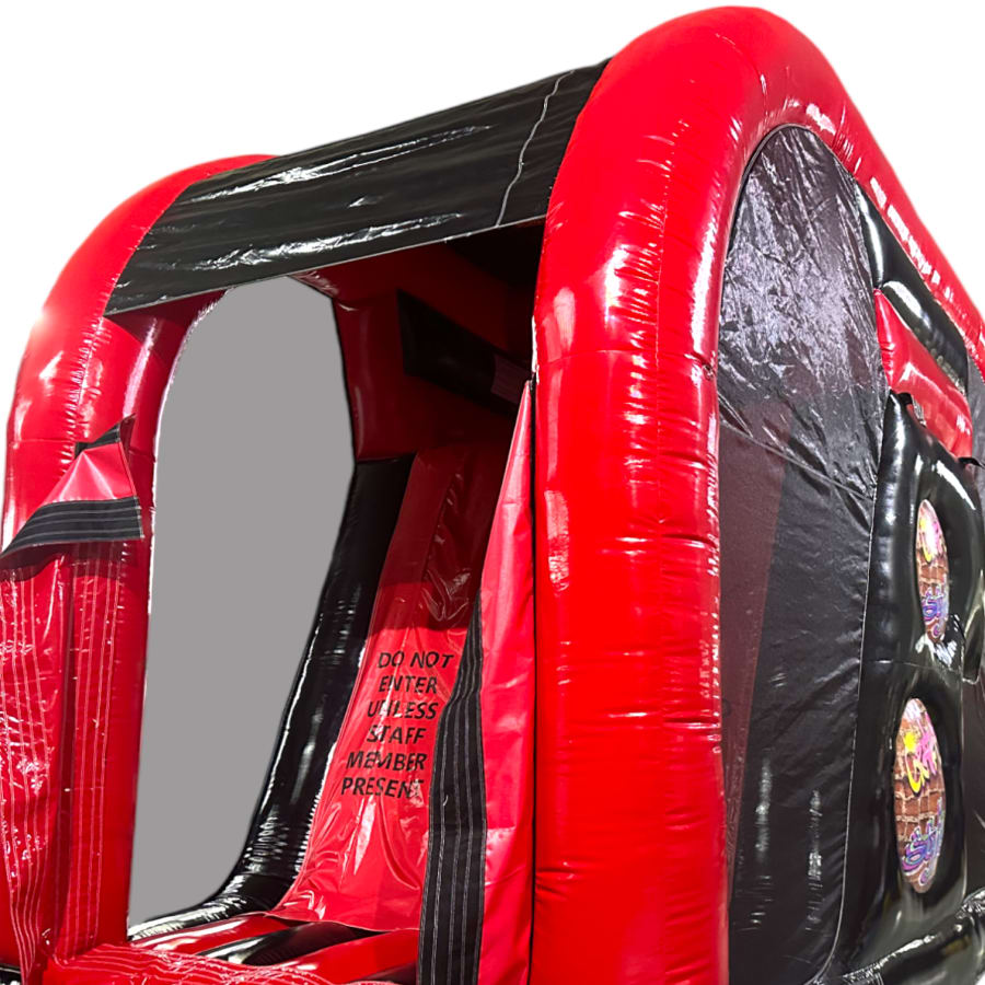 The artwork theme is absolutely fantastic and is the latest theme from our high adrenaline games range making it the perfect choice for your event. The overall height is only 11ft so its still suitable for large school sports halls, gymnasiums and large venues. The netted windows on the sides make parent or guardian supervision easy and ensure the users can be seen from all angled of the party or event for maximum safety.