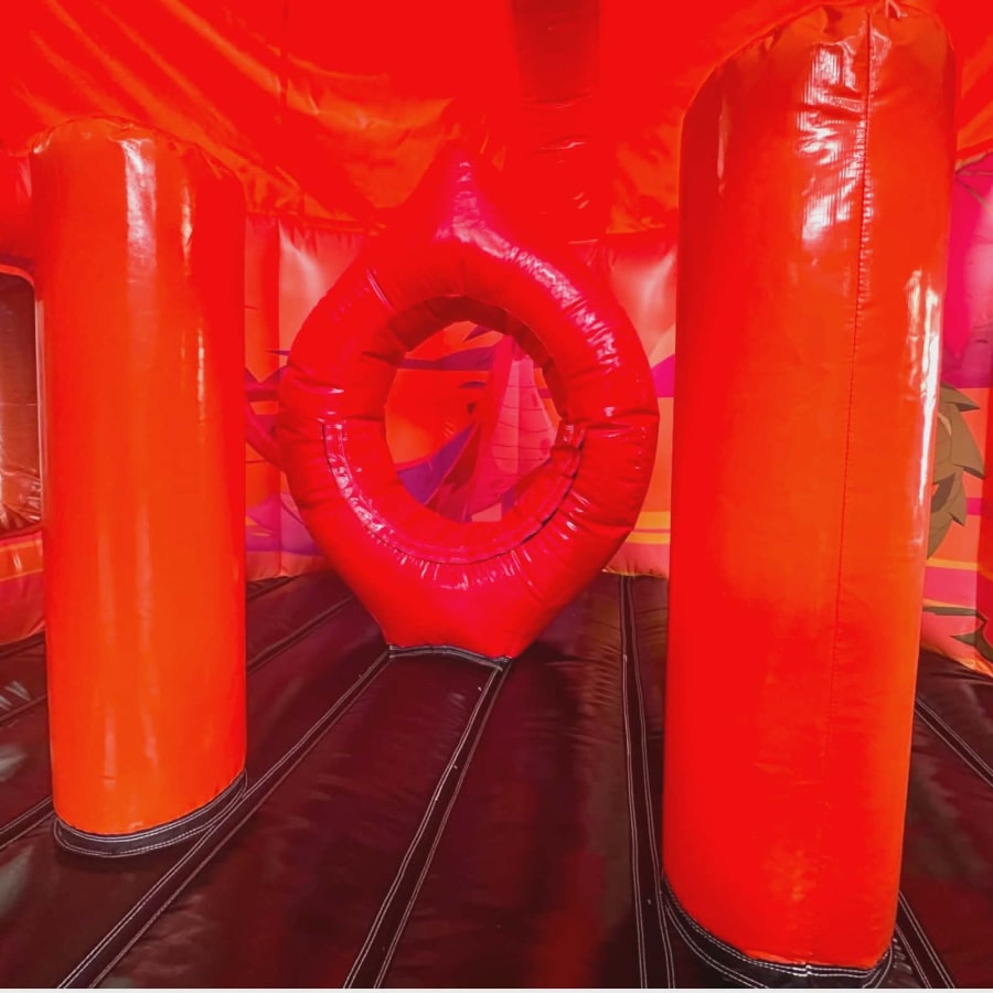 Inside the upper volcano chamber, adventurers will uncover a hidden bouncy castle lair complete with biff-bash posts, a dive hoop, and viewing windows — perfect for spotting knights (aka mum and dad!) below. It’s an ideal “secret dragon den” for imaginative play or catching their breath between slides.