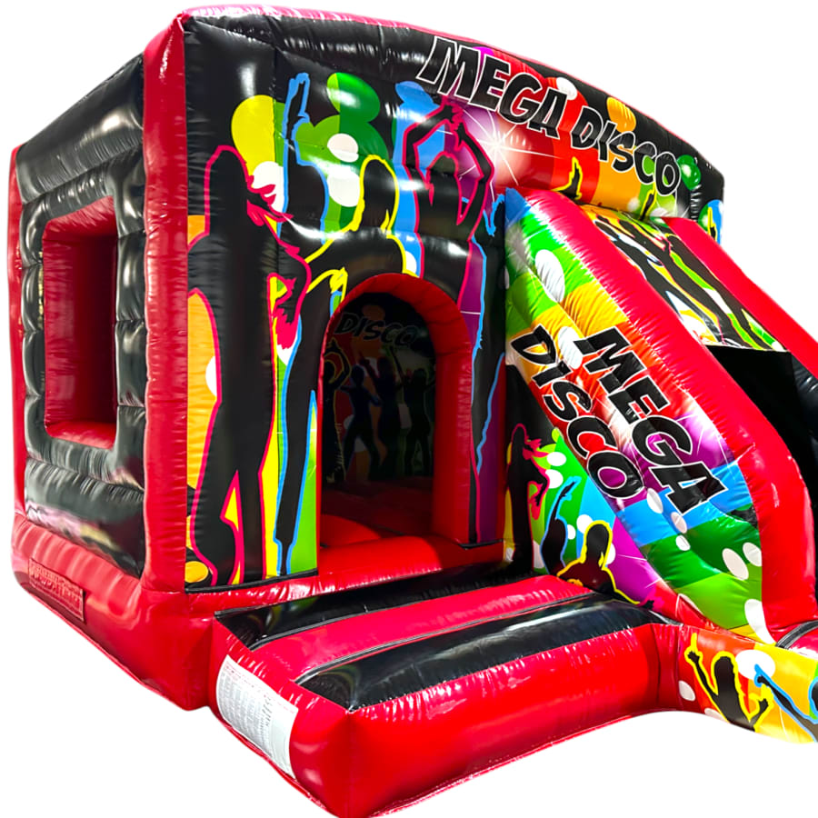 The 12ft x 17ft Bouncy castle with slide is a fantastic new addition that can be added to your fleet. The bouncy castle with slide combines 2 of the most popular items in one extraordinary inflatable where space is at a premium. The bouncy castle with slide combo is the perfect combination slide for any party, venue or occasion and is ideal for all age groups. This brightly coloured piece of equipment provides the perfect bouncing area to bounce along with friends, whilst the slide provides entertainment for the rest of the guests at the same time and certainly won't break the bank.
