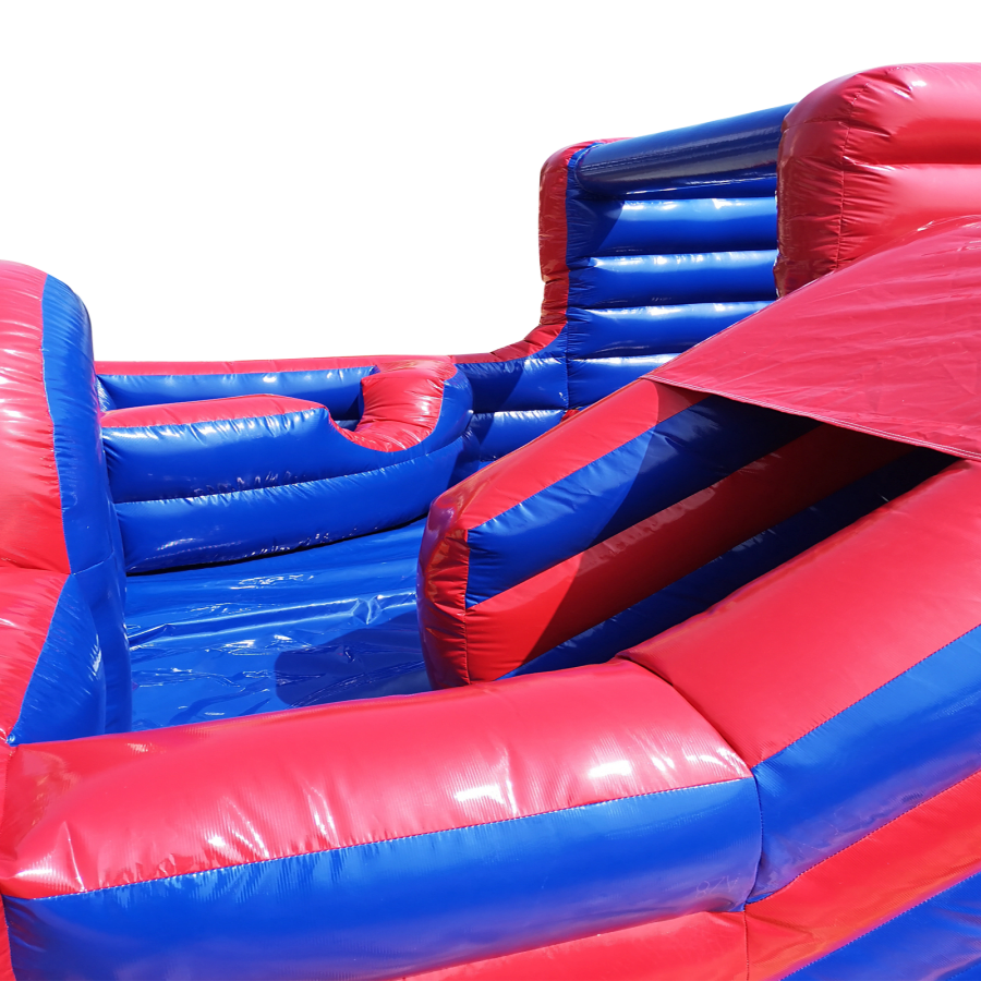 The park comes complete with full size bouncy castle, ball pool, slide, Archway, Air Juggler Cones, Containment Barrier, Fitted Groundsheet, velcro steps and padded slip sheet for extra safety.