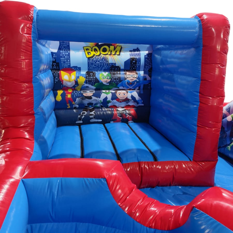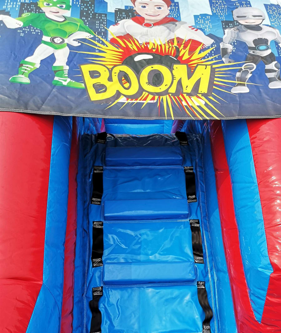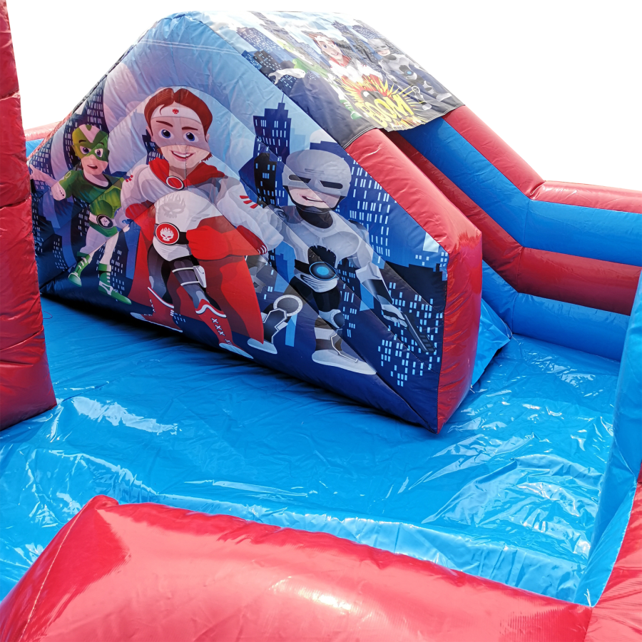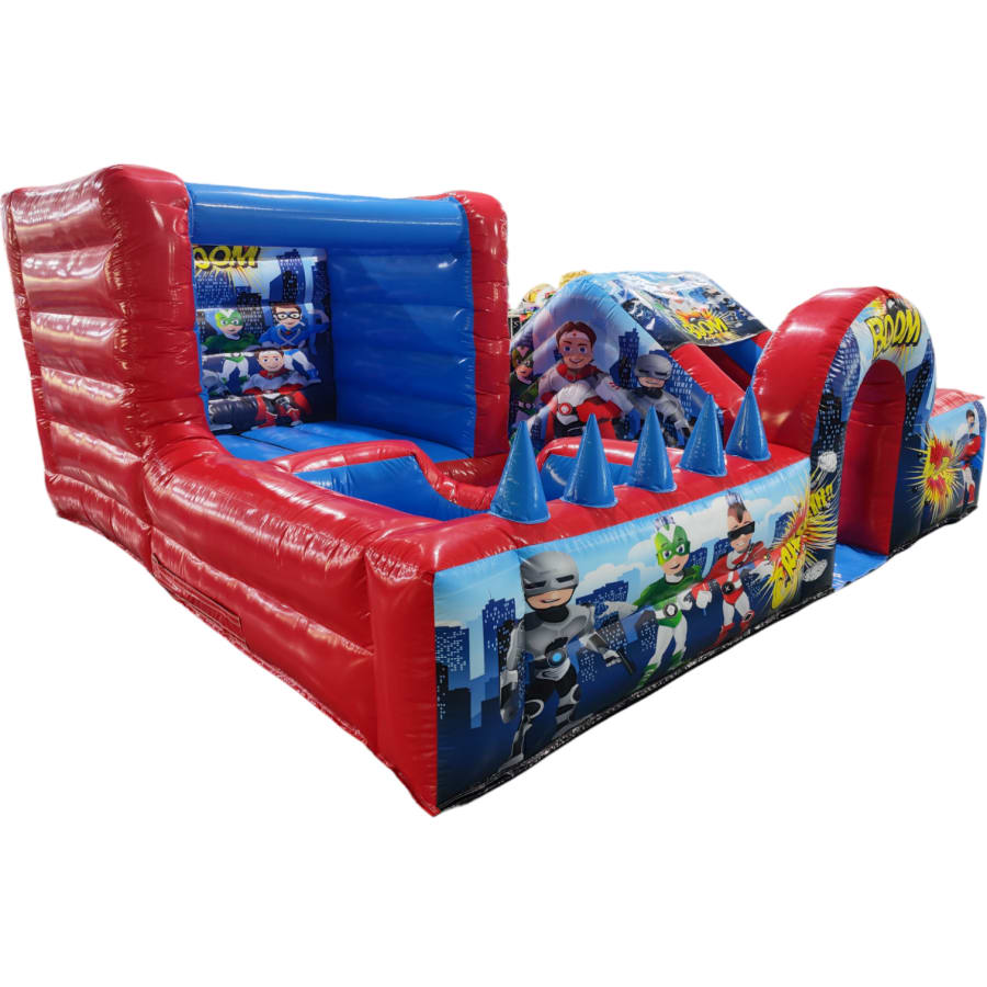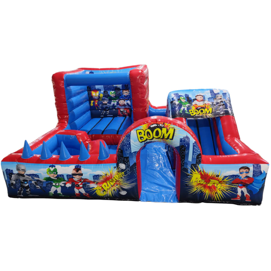 The park comes complete with full size bouncy castle, ball pool, slide, Archway, Air Juggler Cones, Containment Barrier, Fitted Groundsheet, velcro steps and padded slip sheet for extra safety.