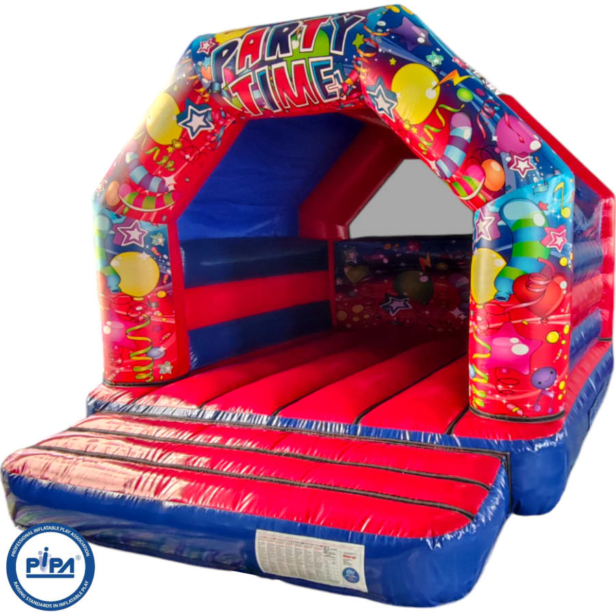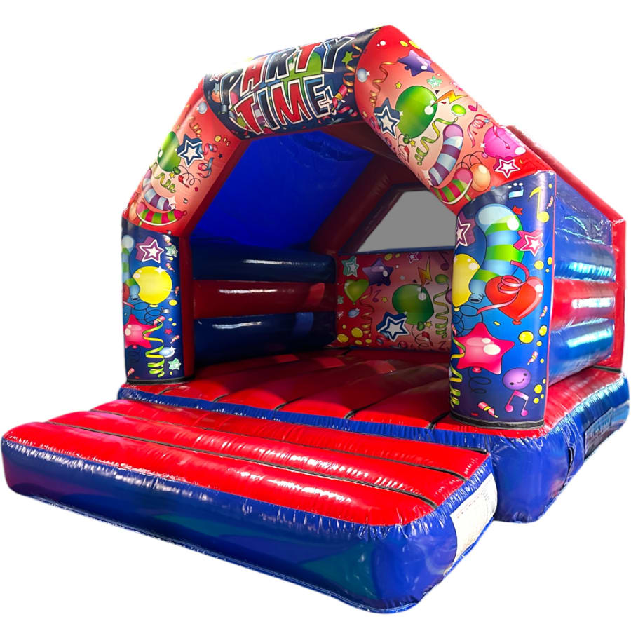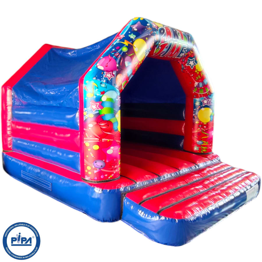 The Adult Partytime Red & Blue Bouncy Castle is a brilliant attraction and a really good way to draw visitors to your event, summer fete, summer gala, summer ball, fete, fair, school gala, pub, club, scouts group, reward event, end of term party, shopping centre or simply for a bit of light-hearted fun at a private party event or birthday bash.