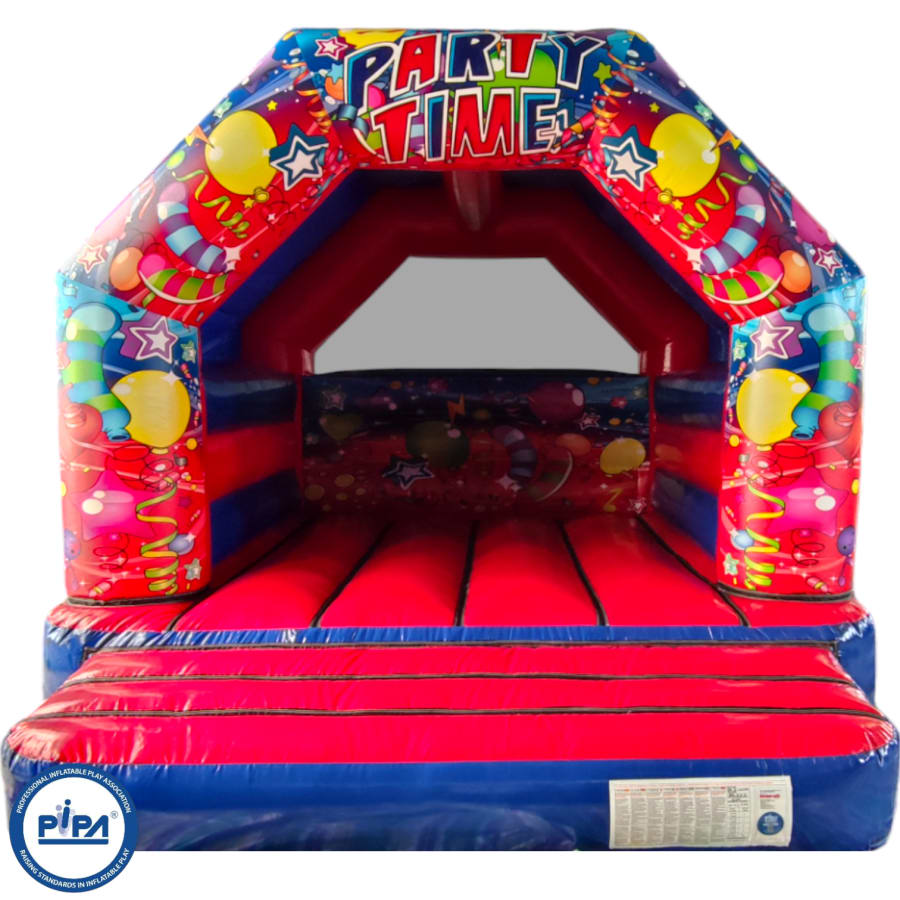 The 12x15ft Adult Partytime Red & Blue Bouncy Castle is the perfect theme for any themed party, venue or occasion. The Adult Partytime Red & Blue castle is a great size at only 9ft 9" which makes the hire ideal for both indoors and outdoor hire and will keep both adults and children entertained for hours, leaving you to be able to sit back and watch them bounce, play, laugh, have fun and enjoy their day. The Partytime artwork is very realistic and absolutely fantastic quality, ensuring the Partytime bouncy castle is the perfect theme for any party idea or celebration.