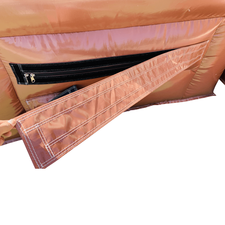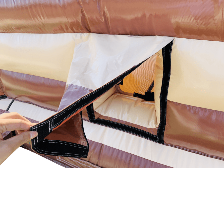 The wild west bouncy Castle offers a large safety step at the front which makes it easy for getting on and off the inflatable safely. The built-in rain cover protects the users from light showers and strong sunlight, depending on the time of year, making it perfect for all the cowboys and cowgirls that may want to hire from you.