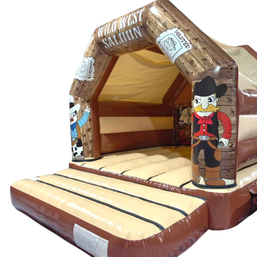 The 12x15 Wild West Bouncy Castle is the perfect theme for any themed party, venue or occasion. The wild west castle is a great size at only 9ft 9" which makes it ideal for both indoors and outdoor hire and will keep both adults and children entertained for hours, leaving you to be able to sit back and watch them bounce, play, laugh, have fun and enjoy their day. The wild west artwork is very realistic and absolutely fantastic quality, ensuring the wild west bouncy castle is the perfect theme for any cowboy/ girl or rodeo themed party idea or celebration.