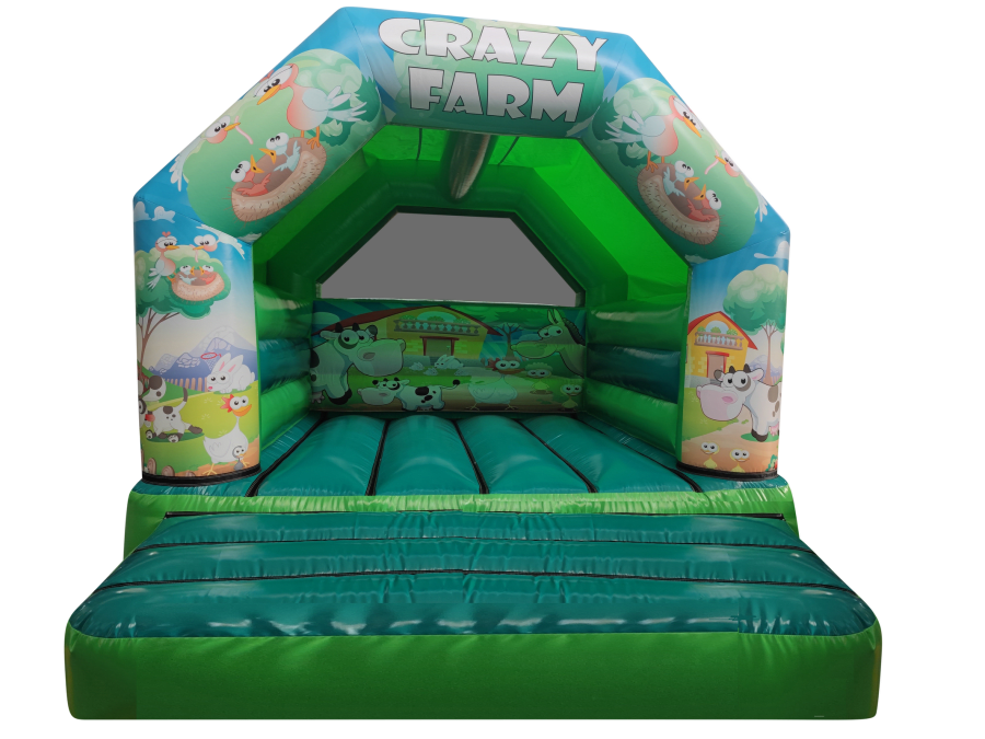 The 12x15 Farmyard Bouncy Castle is the perfect theme for any Farmyard themed party, venue or occasion. The Farmyard castle is a great size at only 9ft 9" which makes it ideal for both indoors and outdoor hire and will keep both adults and children entertained for hours, leaving you to be able to sit back and watch them bounce, play, laugh, have fun and enjoy their day. The Farmyard artwork is very realistic and absolutely fantastic quality, ensuring the Farmyard bouncy castle is the perfect theme for any themed party idea or celebration.