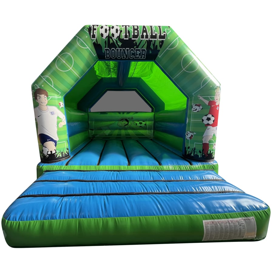 The 12x15 Football Bouncy Castle is the perfect theme for any Football themed party, venue or occasion. The Football castle is a great size at only 9ft 9" which makes it ideal for both indoors and outdoor hire and will keep both adults and children entertained for hours, leaving you to be able to sit back and watch them bounce, play, laugh, have fun and enjoy their day. The Football artwork is very realistic and absolutely fantastic quality, ensuring the Football bouncy castle is the perfect theme for any themed party idea or celebration.
