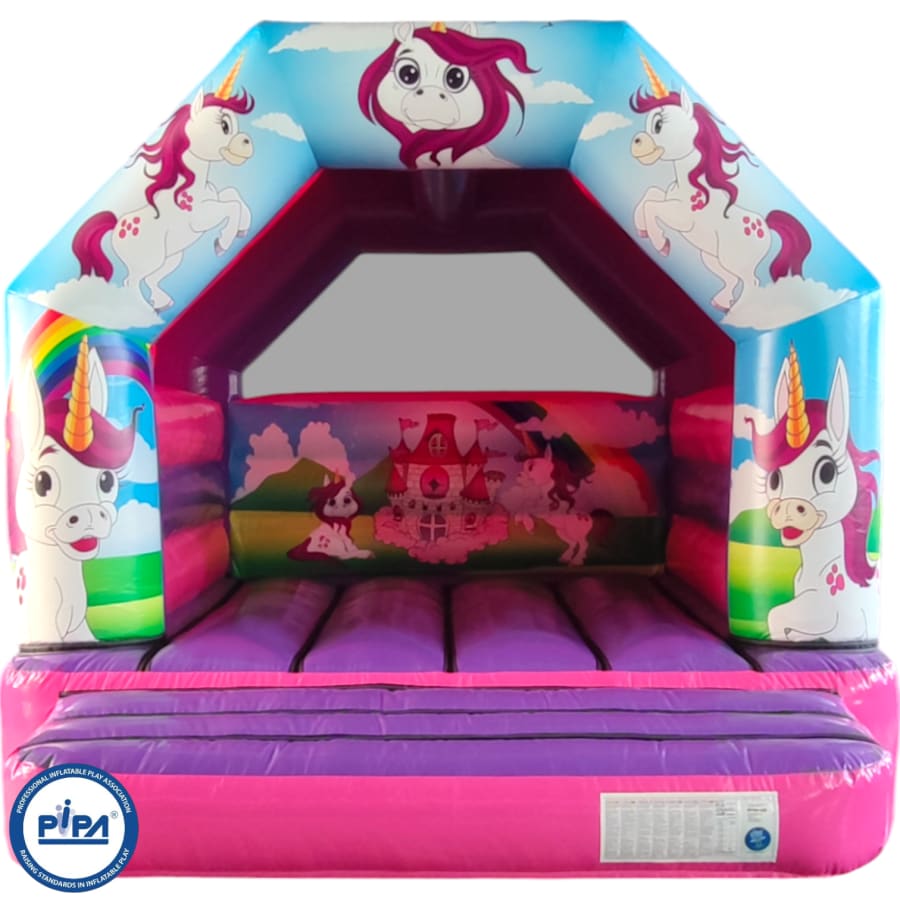 The 12x15 Unicorn Bouncy Castle is the perfect theme for any Unicorn themed party, venue or occasion. The Unicorn castle is a great size at only 9ft 9" which makes it ideal for both indoors and outdoor hire and will keep both adults and children entertained for hours, leaving you to be able to sit back and watch them bounce, play, laugh, have fun and enjoy their day. The Unicorn artwork is very realistic and absolutely fantastic quality, ensuring the Unicorn bouncy castle is the perfect theme for any themed party idea or celebration.