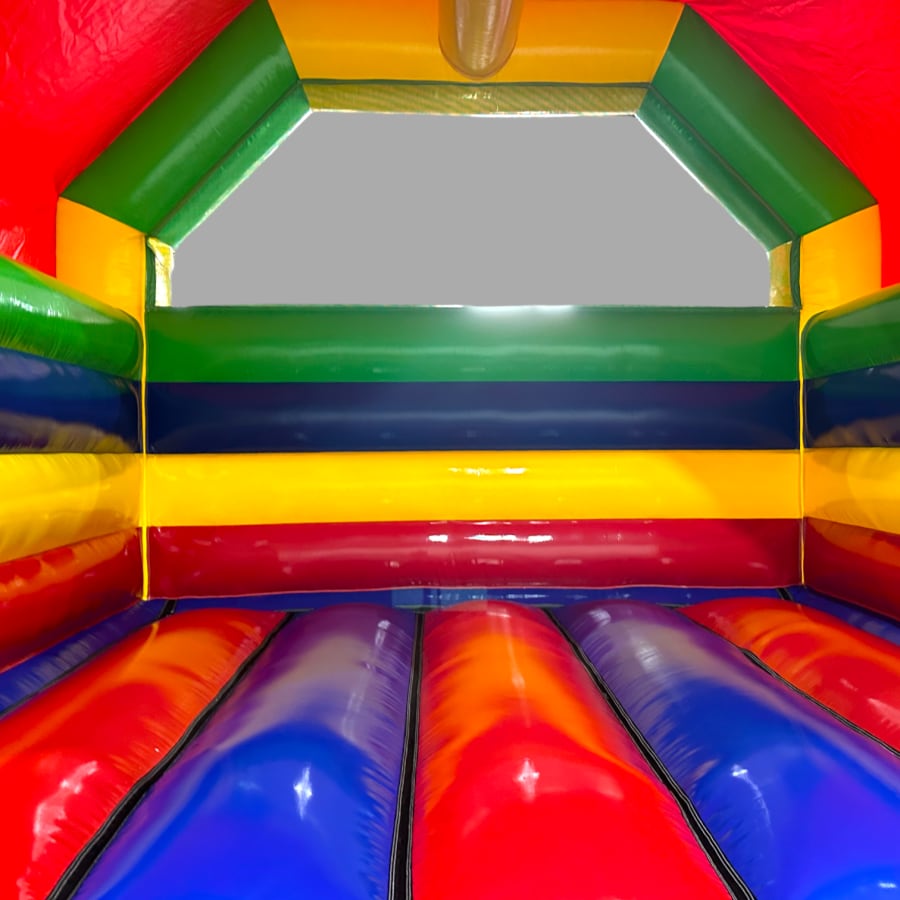 Our 15x15ft Multicoloured bouncy castle is fantastic for any party, venue or occasion. The Multicoloured castle is a great size and is a real eye catcher for a garden party or event. This Multicoloured bouncy castle will keep both adults and children entertained for hours, leaving your customers to be able to sit back and watch them bounce, play, laugh, have fun and enjoy their day.