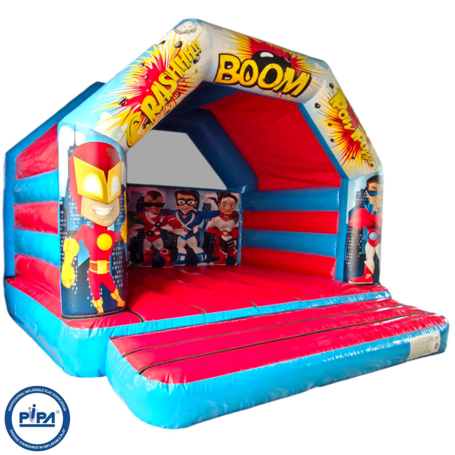 The Superhero Bouncy Castle is a brilliant attraction and a really good way to draw visitors to your event, summer fete, summer gala, summer ball, fete, fair, school gala, pub, club, scouts/guide group, reward event, end of term party, shopping centre or simply for a bit of light-hearted fun at a private party event or birthday bash. Quickly inflated, This item will provide hours of fun for many events & its compact inflatable design ensures its accessible to all locations including indoors. Why delay, Call us today and see what we can do to make your event extra special!