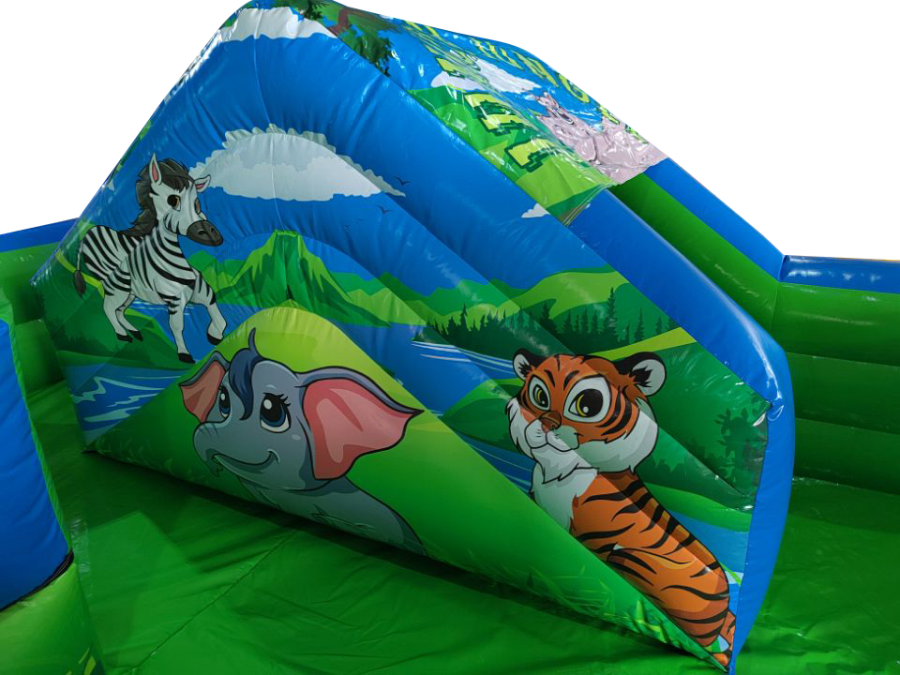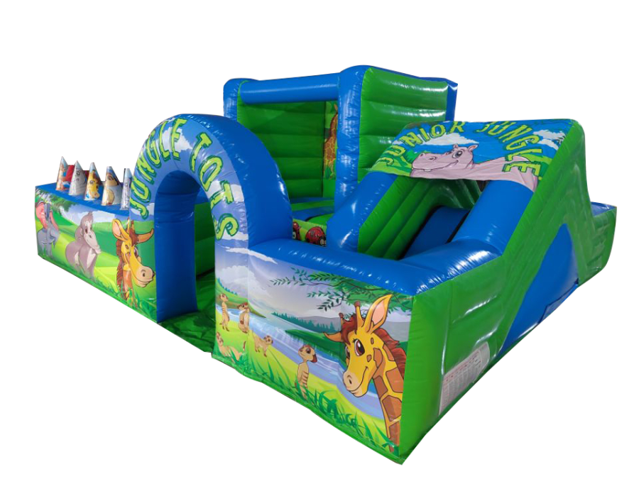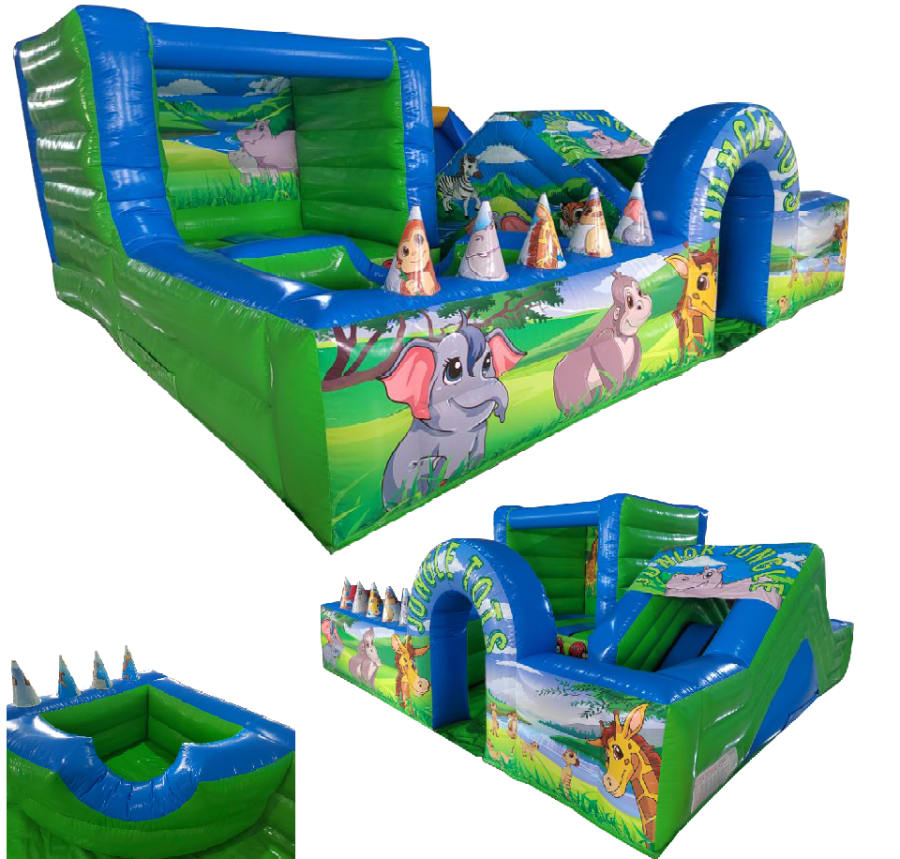The park comes complete with full size bouncy castle, ball pool, slide, Archway, Air Juggler Cones, Containment Barrier, Fitted Groundsheet, velcro steps and padded slip sheet for extra safety.