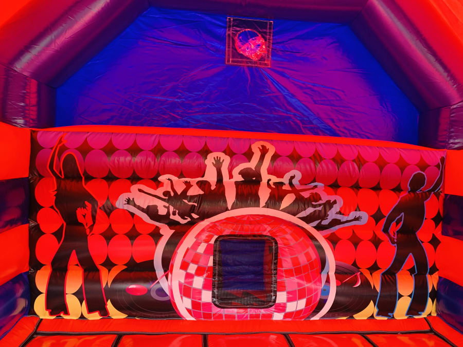 This Adult Disco bouncy castle will keep both adults and children entertained for hours, leaving you to be able to sit back and watch everyone bounce, play, sing, dance, laugh, have fun and enjoy their day.