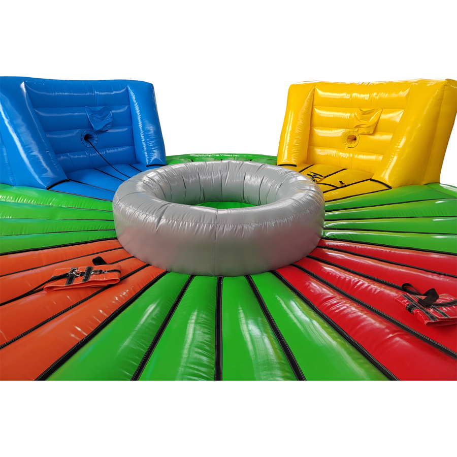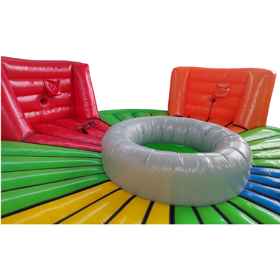 The sheer size and scale of the hungry hippo style dash game inflatable ensures visitors can see the attraction from miles around and is a fantastic way to draw in additional visitors to your event, fete, fair, school gala, pub, club, shopping centre or simply for a bit of light-hearted fun at a private party event or birthday bash. It's a fantastic team game and can be extremely competitive for all those taking part. The human hungry hippo alternative is a really fast paced game I which you must dash and grab against your opponents in the fastest time possible in order to stay in the game.