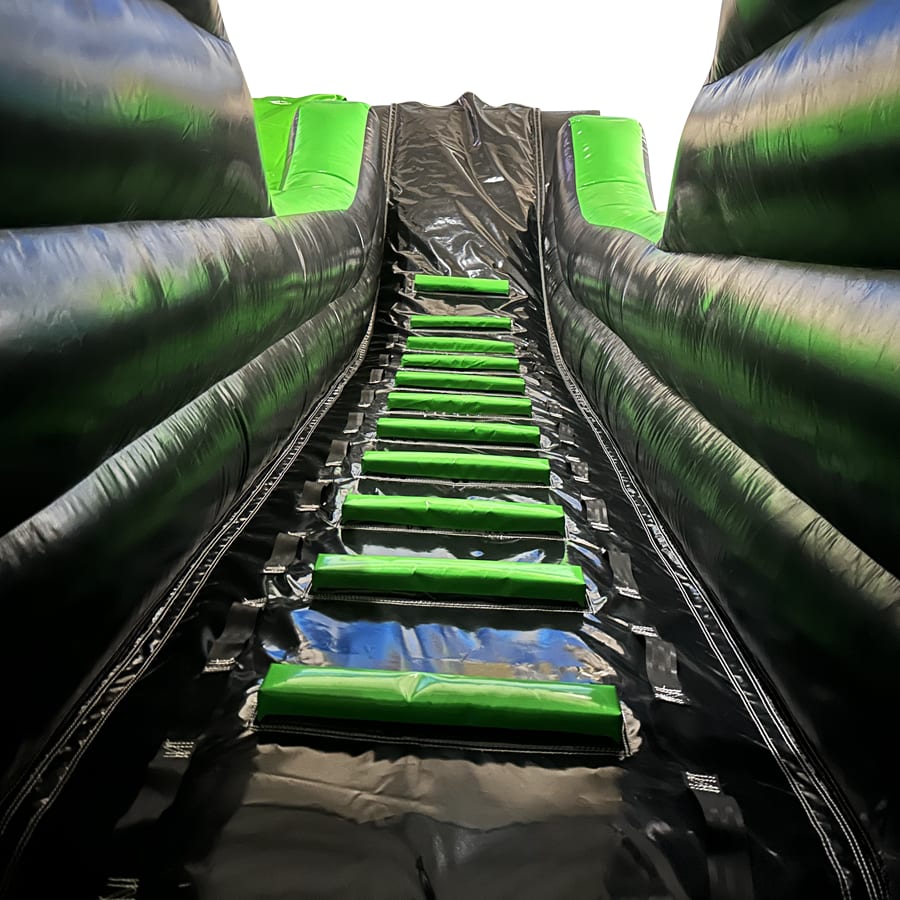 - The platform on this inflatable slide has been reduced in width by 60% to accommodate single-file use by children, reducing weight by approximately 45kg.