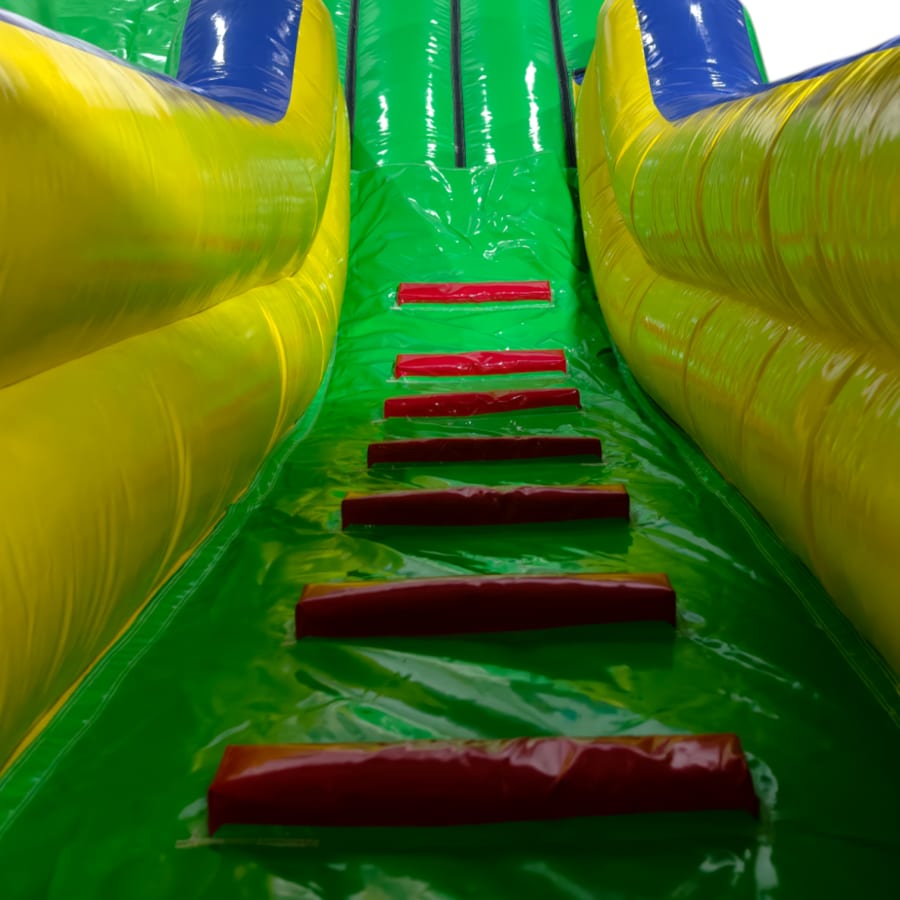 - The platform on this inflatable slide has been reduced in width by 60% to accommodate single-file use by children, reducing weight by approximately 45kg.