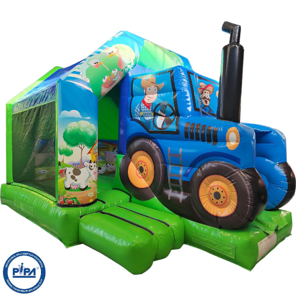 The bouncy castle with slide combines 2 of the most popular items we manufacture in one extraordinary inflatable where space is at a premium. The bouncy castle with slide combo is the perfect combination slide for any party, venue or occasion and is ideal for all age groups. This brightly coloured piece of equipment provides the perfect bouncing area to bounce along with friends, whilst the slide provides entertainment for the rest of the guests at the same time and certainly won't break the bank for the creativity it brings. This will be a battery powered design as standard but can be pre-wired upon request.