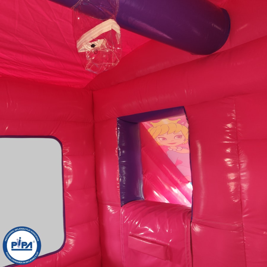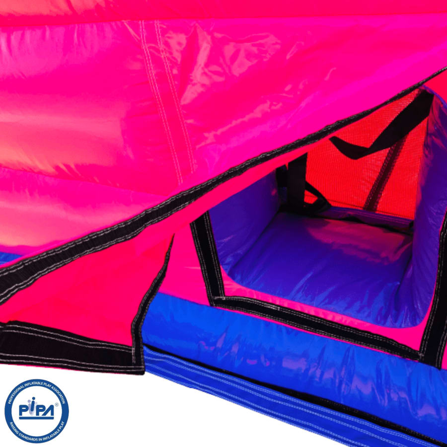 The bouncy castle with slide hire offers features such as firm step holds, Extra handrails and a netted roof to stop over adventurous children from climbing out ensuring maximum safety. The inflatable is perfect for entertaining a birthday party of around 15 children at any one time (not all at once of course) and is a really good slide choice is your planning a small school gala or summer fete where the smaller age range needs to be catered for. We also have a matching range of Bouncy castles, Ballpools, Soft play and other inflatables if you really want to go all out. This will be a battery powered design as standard but can be pre-wired upon request.